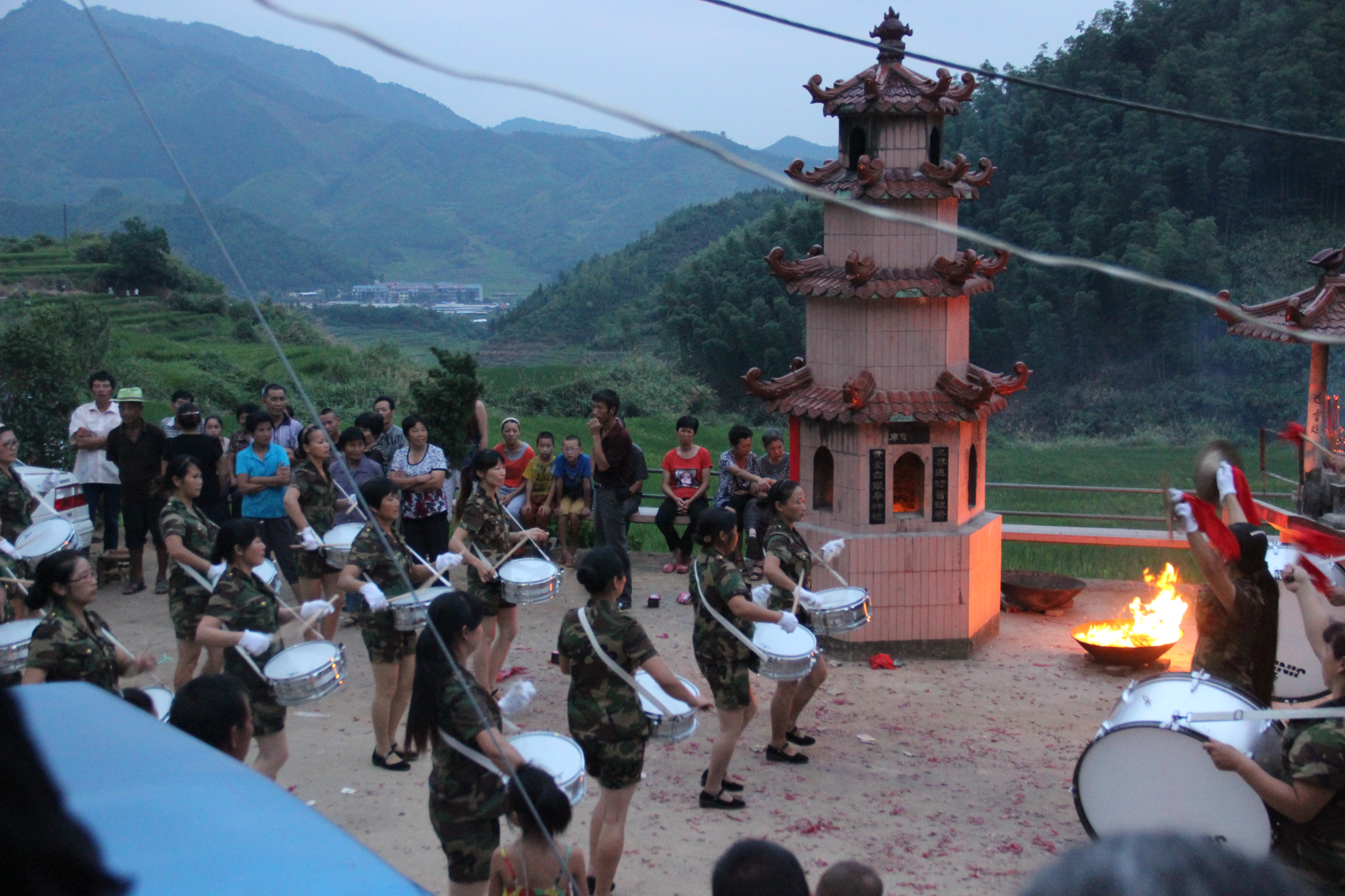 根据乡政府的工作人员介绍,对于畲族人民来说,七夕是一个重要的日子并且拥有悠久的历史,往往会进行比较隆重的庆祝来祈祷自己的姻缘美满,人们认为初六的24点是最为重要而灵验的时间,所以从今天傍晚开始人们就到达了寺庙。在这一天大部分畲民都会上山烧香,当然这其中也包括一些汉族村民。晚六时许,实践团队就在当地乡镇工作人员的带领下来到了现场,此时已经相当热闹,缭绕着的烟雾,优美的音乐以及时不时响起的爆竹声渲染出浓重的节日气氛。各种歌舞表演赢得在场观众的阵阵掌声。好奇的实践团队成员也入乡随俗,进入寺庙叩首上香,虔诚地许下心愿,并与看了当地畲民一些精彩的表演。