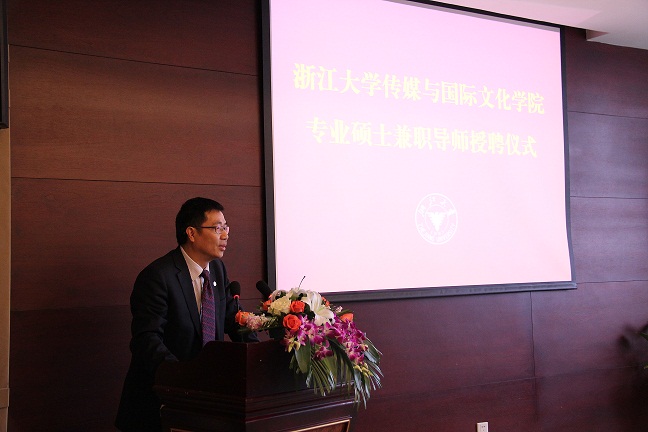 授聘仪式在融洽的氛围中拉开了序幕。首先,播放了学院的介绍短片,向嘉宾介绍了学院的历史沿革、学术水平等基本情况。罗卫东副校长发表了寓意深刻的讲话,他以大学精神与学校历史为开端,以学科顺应社会发展为脉络,真诚地对专业学位硕士导师表达了由衷的谢意与深切的期盼。李杰副院长做了学院专业学位硕士培养模式规划报告,阐述了专业学位硕士与科学学位硕士的区别特点,介绍了浙江大学探索新闻传播专业硕士培养模式上的一些探索。