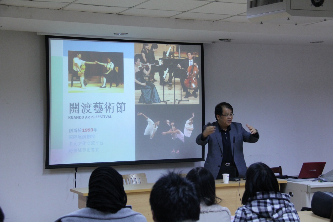 同时,朱校长还以国光剧团、云门舞集、舞蹈空间、优人神鼓、明华园、霹雳布袋戏为例,从“全球—在地”、“东方—西方”、“传统—现代”、“科技—艺术”四个方面介绍了文化创意的新契机,以及台湾在这方面所做的努力和可借鉴的经验。对于文化创意人才的培养,朱校长也有特殊的解读:“文化创意产业的‘市场端’建构非常重要,但‘源头端’的深耕也应受到相应的重视”。为论证这一点,他还举了苹果公司的案例,幽默的言辞深深吸引了在座的同学。