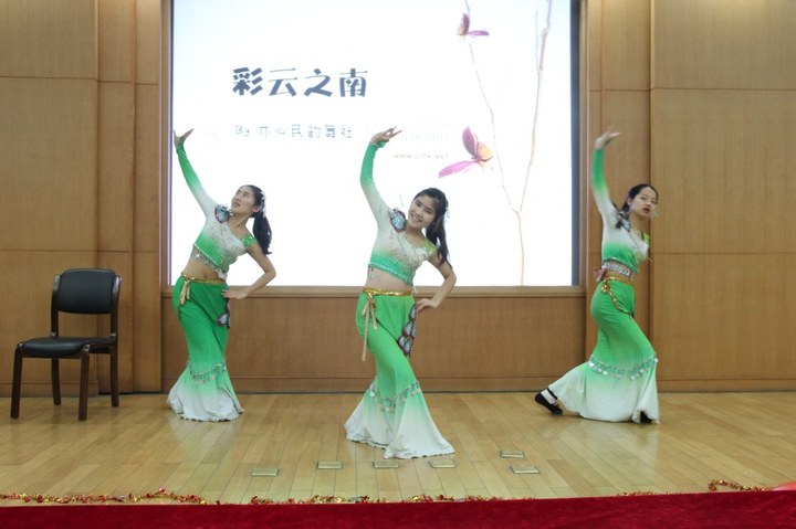 晚会以“美食”、“愿望”、“爱”为主题分为三个环节。在到场老师上台向同学们送上新年祝福和期望之后,第一个出场的节目是爱情、友情对唱。动人的歌声让大家的心中感到温暖。随后到来的亦心民韵舞社更是让人眼前一亮。穿着绿色长裙的女生,舞姿曼妙,眼波流转,面带微笑,带着现场同学到彩云之南好好游览了一番。