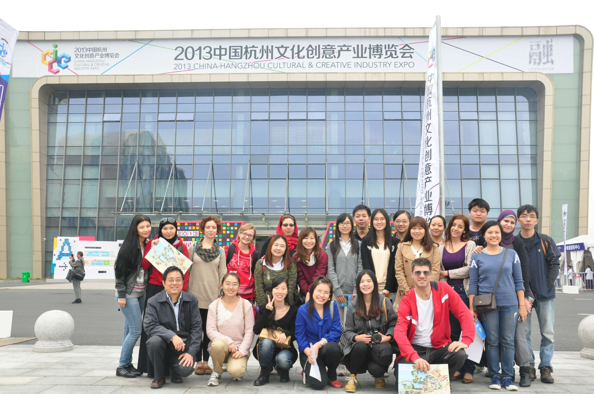 10月18号早上八点,汉语国际教育团支部的20位同学,在刘翔老师的带领下,集体乘坐由主办方提供的大巴前往位于萧山白马湖的杭州文化博览会,参观由世界各地参展商带来的精彩的文化盛宴。