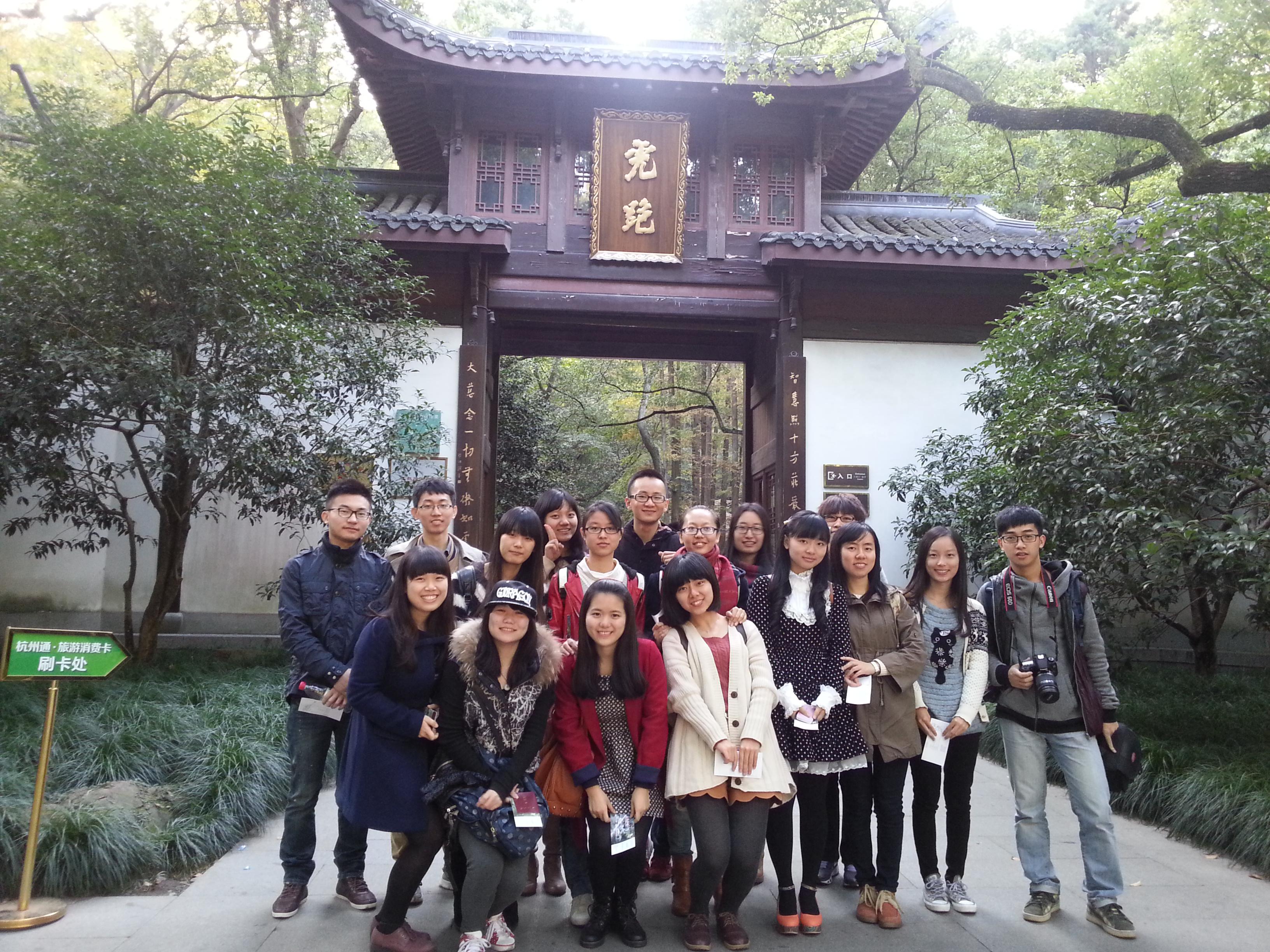 秋冬之交、杭城景色宜人,虎跑公园内秋意依旧盎然、泉水泠泠。新闻班的同学们三五成伴、八九成行,一边欣赏美丽的山中风景,一边用手中的专业相机记录最后一抹秋意浓。大家遇到自然造物最美之处,纷纷拍摄,之后群坐在草坪上,用专业课上学到的摄影知识品评伙伴们的作品。你一言我一语,暖暖的阳光洒在每个人的身上,原本幽静的虎跑变得活力洋溢。