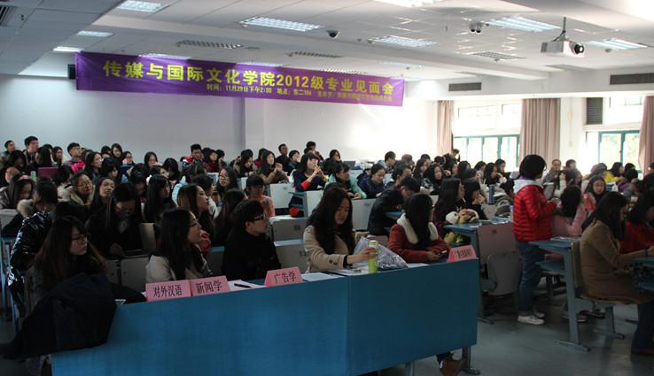 11月29日下午,威廉希尔(WilliamHill-中文官方网站)12级学生专业见面会在紫金港东二104成功举行。传媒学院副院长李杰、国际文化系主任陈强、影视艺术与新媒体系副主任胡晓云、新闻系副主任朱菁以及学院团委书记刘岩出席了本次见面会,12级各专业班主任也悉数到场,与各班学生见面交流。