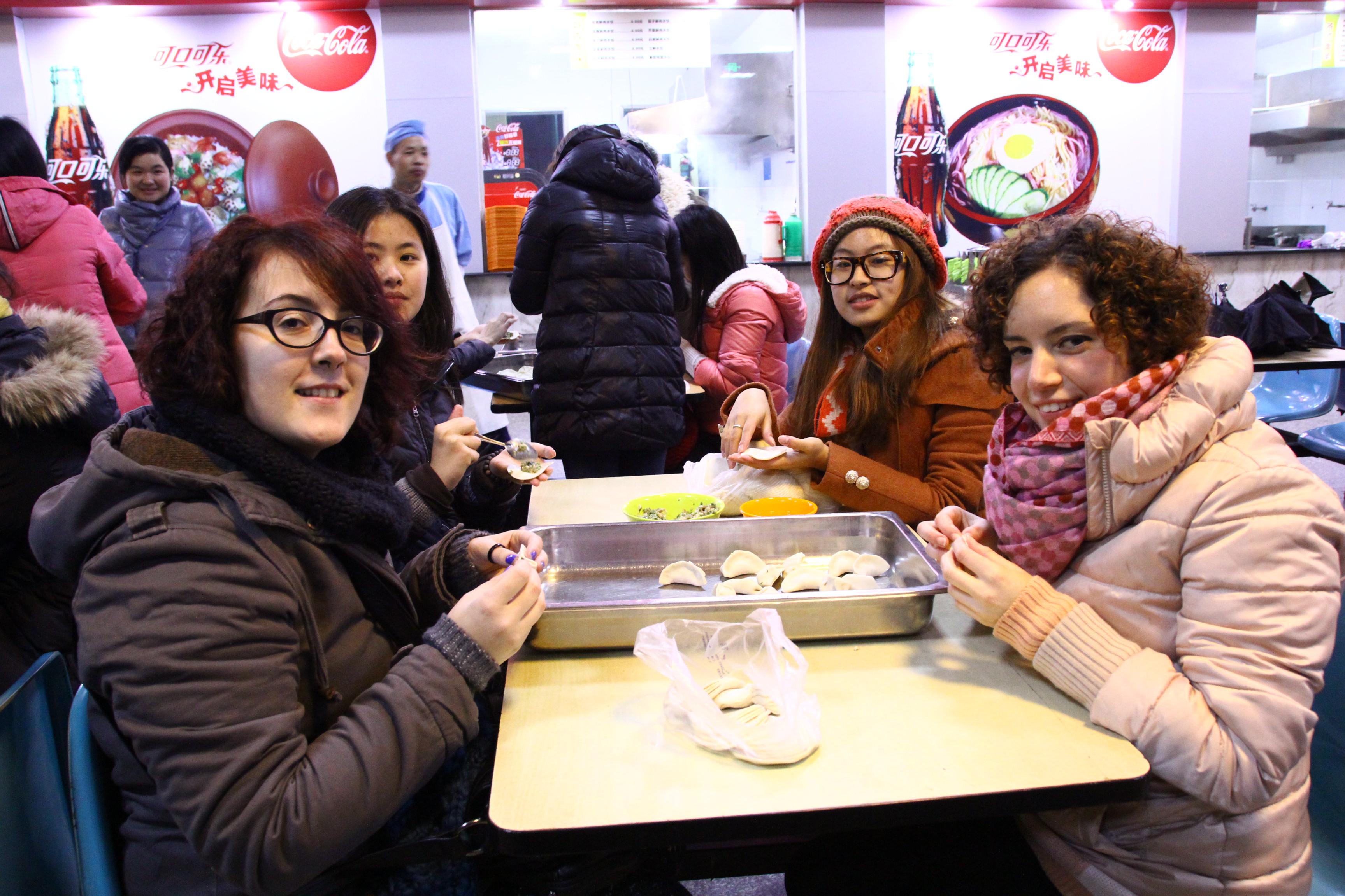 different shapes and enjoyed the process very much. A foreign student named Ilaria D'adda, said that :" It's the first time I made the dumplings, it's