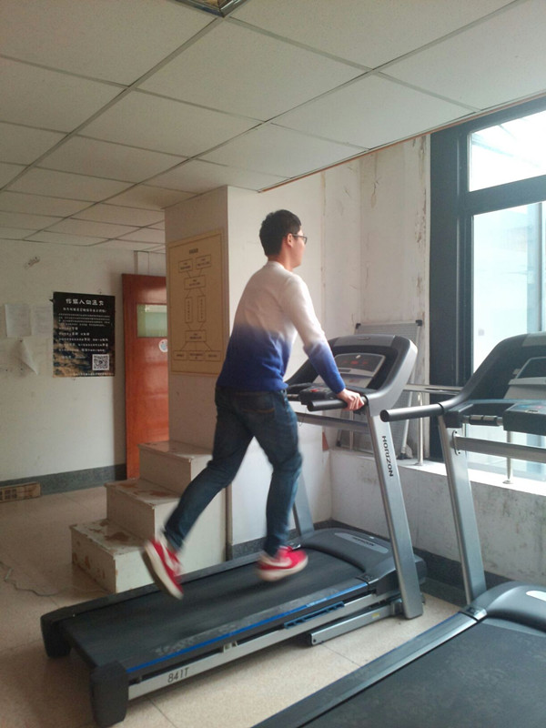 “啊,跑步机,太好了!”看见威廉希尔(WilliamHill-中文官方网站)四楼办公空间新架设的两部跑步机,我不禁一阵兴奋。“这下减肥有望了!”看着自己日渐肥大的肚腩、愁着日益增长的体重,真是不堪回首。遥想二十多年前,我还在浙大玉泉校区读本科的时候,参加校运动会,1500米得过工科男子组第八。(可别小瞧这第八,当时全校工科男可是超万人的规模。)可如今,连走楼梯都气喘嘘嘘。这都怪我们的工作太依赖电脑了,每天就是坐在电脑前不动,现在就连上课也是坐在多媒体讲台前用电脑投影,这一晃二十年,不增肥才怪呢!如今想出去跑跑步减减肥吧,一出门竟是满城雾霾,再跑起步来不是跟自己的肺过不去嘛!啊呀,所以这次学院工会确实办了件大好事,真是三中全会学到了位、群众路线走到了家!老师们、同学们,赶紧利用学习工作闲暇时间运动起来!