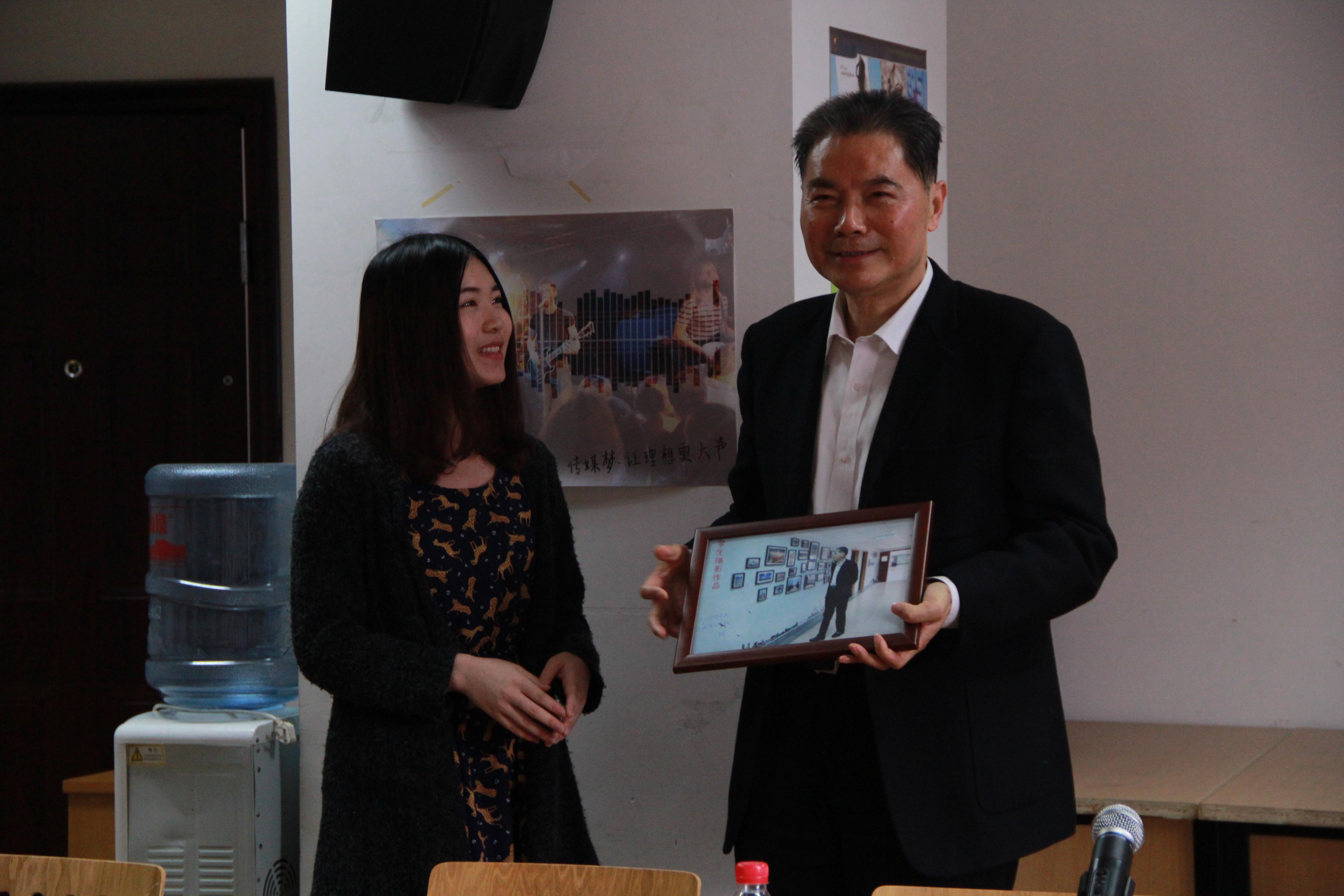 (图:全媒体平台同学为金德水书记献送小礼物)