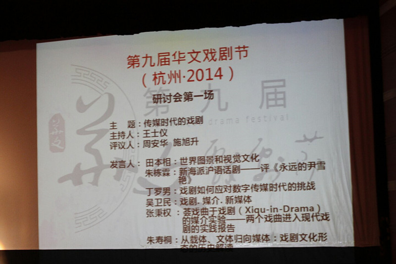 来自两岸四地以及海外的参会代表一百余人出席了开幕式。中国话剧理论与历史研究会会长吴卫民,中国传媒大学副校长廖祥忠,杭州剧院总经理柯朝平,中国剧协副主席、国家话剧院副院长王晓鹰,浙江省戏剧家协会主席黄先钢等嘉宾为本届华文戏剧节致辞。吴为民会长十分嘉许杭州作为文化之城的氛围,简要介绍了华文戏剧节的缘起和特色,并预祝本届戏剧节取得圆满成功。王晓鹰导演高度评价了华文戏剧节在华文戏剧研究领域的重要地位,并对主办方表示感谢。廖祥忠副校长展望了华文戏剧节活动的远景,希望华文戏剧节将来有机会由中国传媒大学主办。与会代表就本届华文戏剧节的主题进行了初步交流。