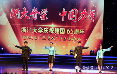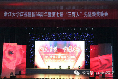 “他们,是无数教育工作者的代表;他们,是我们身边慈祥的师长。国之脊梁,浙大培育,中国力量,成就人类梦想。”2014年9月29日18点30分,紫金港小剧场大幕徐徐拉开,背景墙上“浙大脊梁,中国力量”八字雄劲有力,台上两位主持人迎着璀璨的灯光,宣布浙江大学庆祝建国65周年暨第七届“三育人”先进颁奖晚会正式开始。