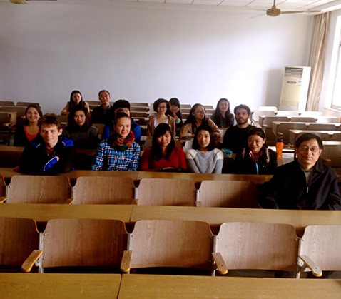 外国留学生平时和我们一起上同样的课,做同样的作业,接受同样的考试。虽然他们来中国之前都已经有过几年的汉语学习,而且汉语基本上都达到了可以跟中国人交流的水平,但是在应对专业而深入的汉语学习的过程中,还是有很多的困难。所以我们14汉硕团支部进行了一次“手拉手”的团日活动,其内容就是中国学生和外国留学生结对帮扶,一个中国学生帮一个外国留学生。由于中外学生数量的不对等,有三个中国学生需要带两个外国学生。在2014年10月31号这天,正好是刘翔老师的中华文化才艺与展示课。趁大家都在,我们进行了班里中外留学生一对一的结对活动。经过双方的自愿选择,全部进行了成功结对。其中中国学生李玥、胡晓昕、胡烈飞带两个外国留学生。