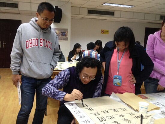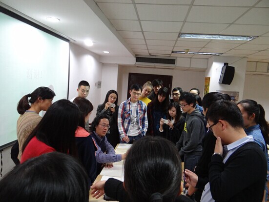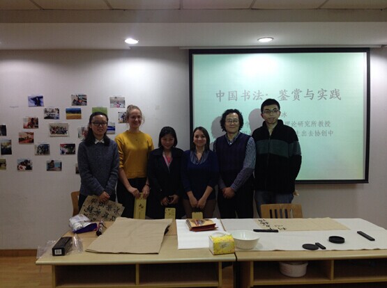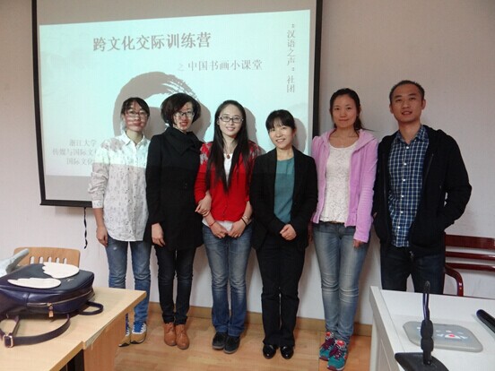 2014年11月3日晚上19:00,西溪校区教学主楼426活动室,传媒学院“汉语之声”举办的跨文化交际训练营第二期“中国书画小课堂”准时开始。本期活动特邀浙江大学美学与批评理论研究所所长沈语冰教授,为同学们讲解中国书画知识,并现场教授中国书法。汉硕所的张丽萍老师和吴剑老师也出席了本次活动。