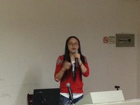 经过前面的环节,大家都对中国书法有了一个非常愉快的体验,随后活动进入了看画猜诗的小游戏环节。这个环节主要是为外国学生准备的,主持人兼活动组织者洪斐同学展示了几张图片,一张图片分别对应一句古诗,这些对中国学生都很容易,但是对于没有中国古代诗歌积淀的外国同学来说就有些难。马来西亚同学夏晓曦猜出了一句“朝辞白帝彩云间”获得了大家的称赞。活动至此,气氛达到了高潮。大家都觉得余兴未尽。在活动最后主持人作了下期预告——中国民乐欣赏。