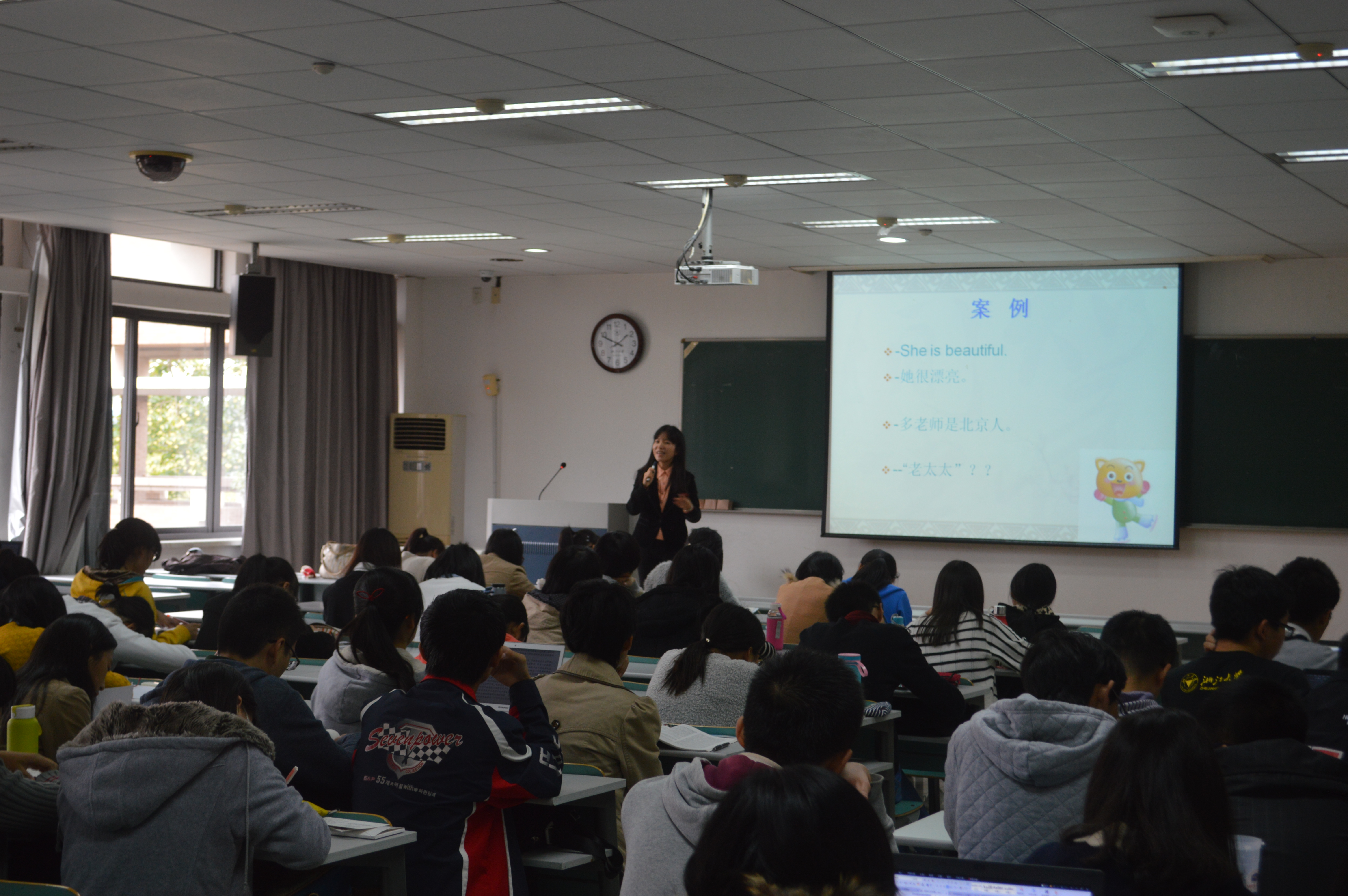 在抛出了一系列“脑筋急转弯”题目,如怎样给外国学生解释,“新(new)太太”为何对应“前妻”而不是“老(old)太太”,参观(visit)颐和园为何不能使用访问(也是visit)颐和园等等现实案例后,张老师总结,“对外汉语不是那么简单的,但对外汉语也是很好玩的”。而这,便是对外汉语所吸引人的魅力之所在了。