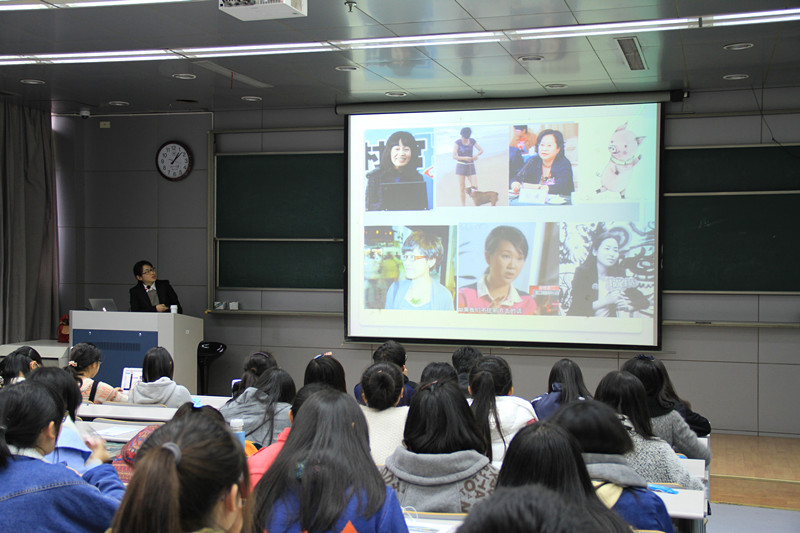 在整场讲座中,赵瑜老师先从专业介绍和教学计划入手,大致介绍了传媒学院广电专业目前的专业优势和软、硬件水平,分析了同学们选择广电专业可以学到的知识和可以提升的能力。同时,赵老师还向在座的传媒大类的同学提出了未来作为一个广电人的最低要求:能够亲自动手剪辑一条新闻。在这些专业概况的介绍上,赵老师语言幽默,举例生动且贴近生活,不断引起在场同学的热烈反馈。