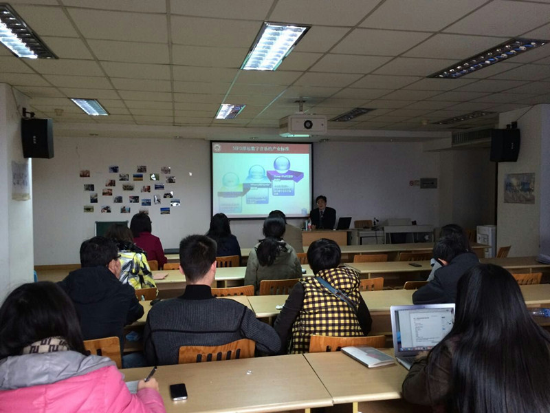 讲座一开始,周荣庭老师先向老师和同学们介绍了相关的学科背景。接着在老师的讲座主题部分中主要涉及了三个方面的内容:新媒体的融合发展问题、超媒体叙事的融合问题和新媒体的融合发展创新。周老师在讲解过程中不仅运用了一些概念和原理性的内容,还运用了大量生动的实例和图表,概念和实例相结合,就能帮助同学们更好地理解。比如在讲解基于超媒体叙事的媒介融合的基本途径这一内容的时候,周老师就用了为大家所熟悉的Netflix公司制作《纸牌屋》的例子来进行论证,大数据的运用帮助《纸牌屋》获得了成功。这种大家十分熟知的例子就让在座的老师和同学们能很快地理解。讲座进行过程中,周老师还向同学们展示了他所带领的团队们在这个课题下所形成的一些研究成果,比如数字教科书的实现,还有仍处于设计创作过程中的游戏项目,一些我们原本以为是高深不可接触的东西,在老师和他的团队的制作和展示下就变得十分具有亲和力,尤其是用视频讲解的化学知识,将化学元素的作用展现的生动形象。