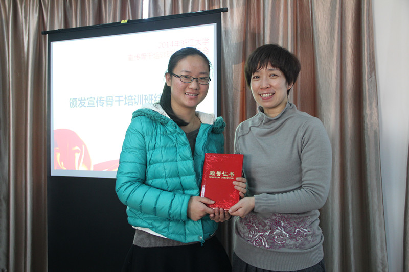 人文学院研一学生王楠作为优秀学员代表做了发言:“原先我的宣传工作经历不多,从培训班精心组织的五场讲座中受益匪浅,我的文本写作、海报设计、活动策划、拍摄视频等短板被慢慢补齐了。王楠还采访了化工系的学术大牛学长,“从他身上汲取人生和学术的营养,已经超越一份作业的意义,让她和同学们的策划、宣传、组织能力得到了全方位的提升。她的发言道出了大家的心声,接着王玲玲老师为学员代表,逐一颁发结业证书。
