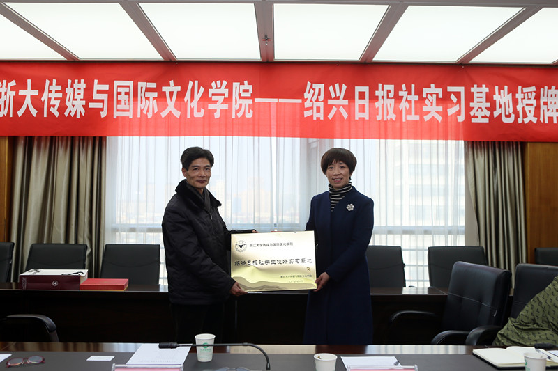 调研期间,王玲玲副书记代表学院向绍兴日报社授牌“绍兴日报社学生校外实习基地”,为浙江大学新闻传播学学生赴绍兴日报社实习提供平台。