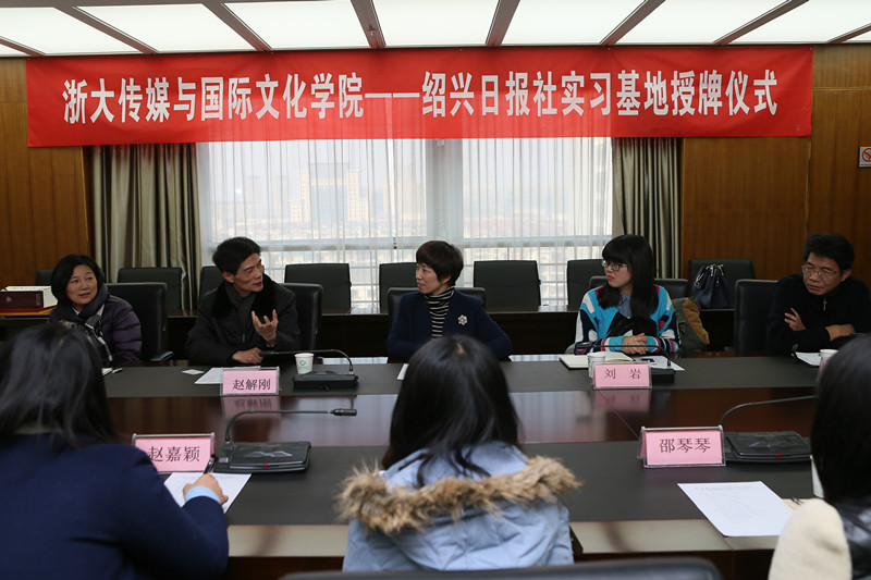 12月21日下午,浙江大学威廉希尔(WilliamHill-中文官方网站)王玲玲、团委书记刘岩带领7名学生赴浙江省绍兴市绍兴日报社参与实践调研。绍兴日报社党委书记、社长赵解刚、绍兴日报社党委副书记、副社长丁建萍、绍兴日报执行副总编朱振华、绍兴晚报执行副主编丁兴根、天天商报执行副主编朱建宇及报社相关人员出席了会议,双方进行了深入的座谈交流,并举行了“绍兴日报社学生校外实习基地授牌仪式”。随后,在绍兴日报社领导的带领下,学生们参观了绍兴日报社,切身感受到新闻工作的忙碌与充实。
