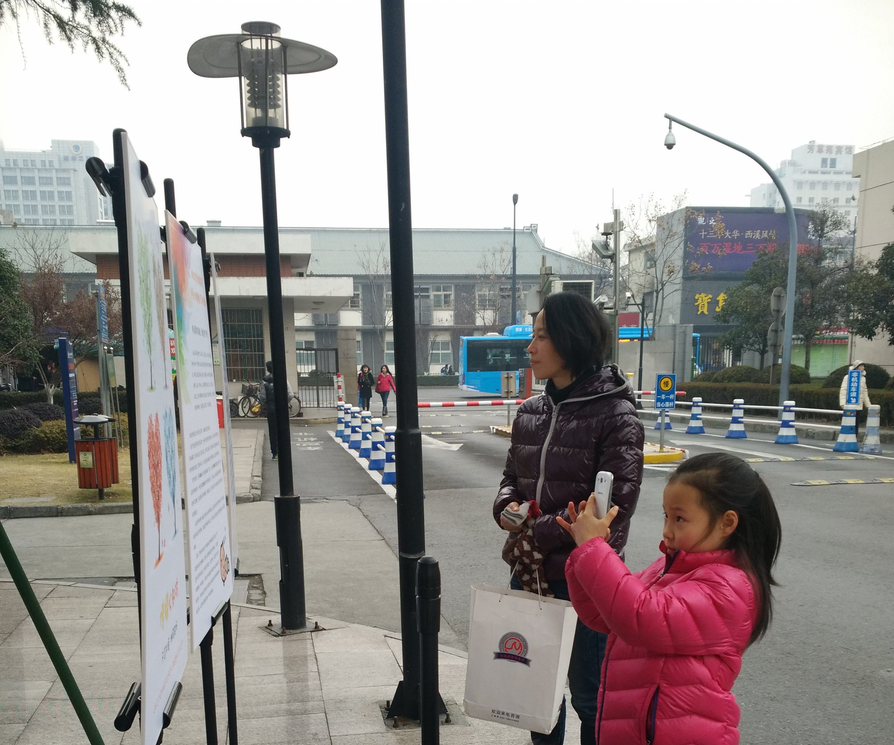 “我喜欢画画,觉得(这些展板)很好看,就让妈妈拍下来回家画”。在妈妈的鼓励下,略有些害羞的小姑娘面对着布置展板的心理委员们小声说道,然后礼貌地被妈妈牵着手与大家挥手告别。