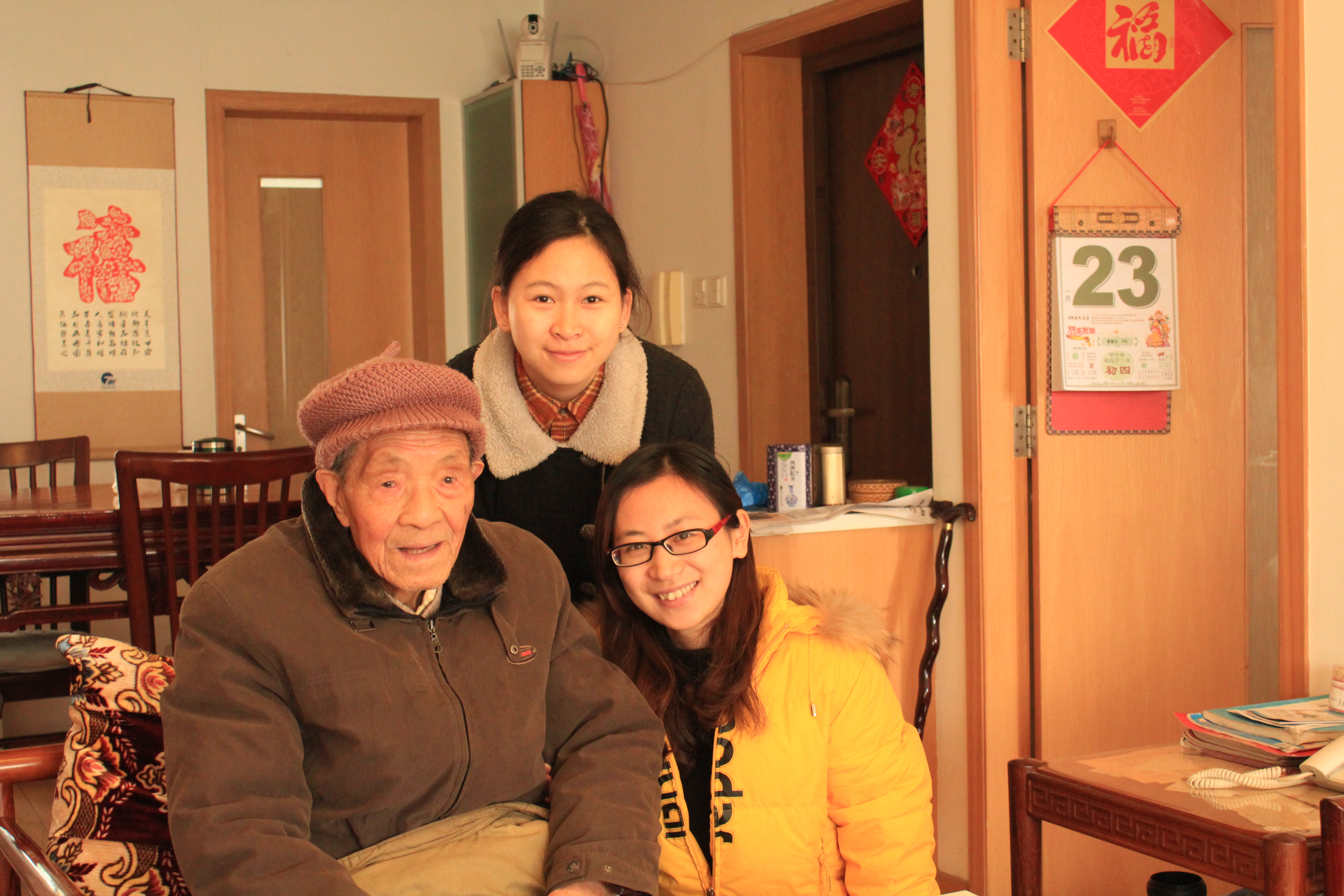 1月20日,成员李玲和韩蕾前往浙江医院采访第一位老兵,95岁高龄的章若明,离休前曾任杭州大学党委常委、副校长。1936年,就读于威海卫公立中学的章若明就在老师的影响下心存抗日救亡之志。学校停课后,不到20岁的章若明投身战斗,他曾组织领导了1940年威海人民第二次武装起义,1942年参加了反扫荡斗争,1944年攻打伪军伪警察据点……然而,曾经的风云事迹,章老师现在多记不清,也说不动了,是在其夫人的帮助下,采访才得以完成。