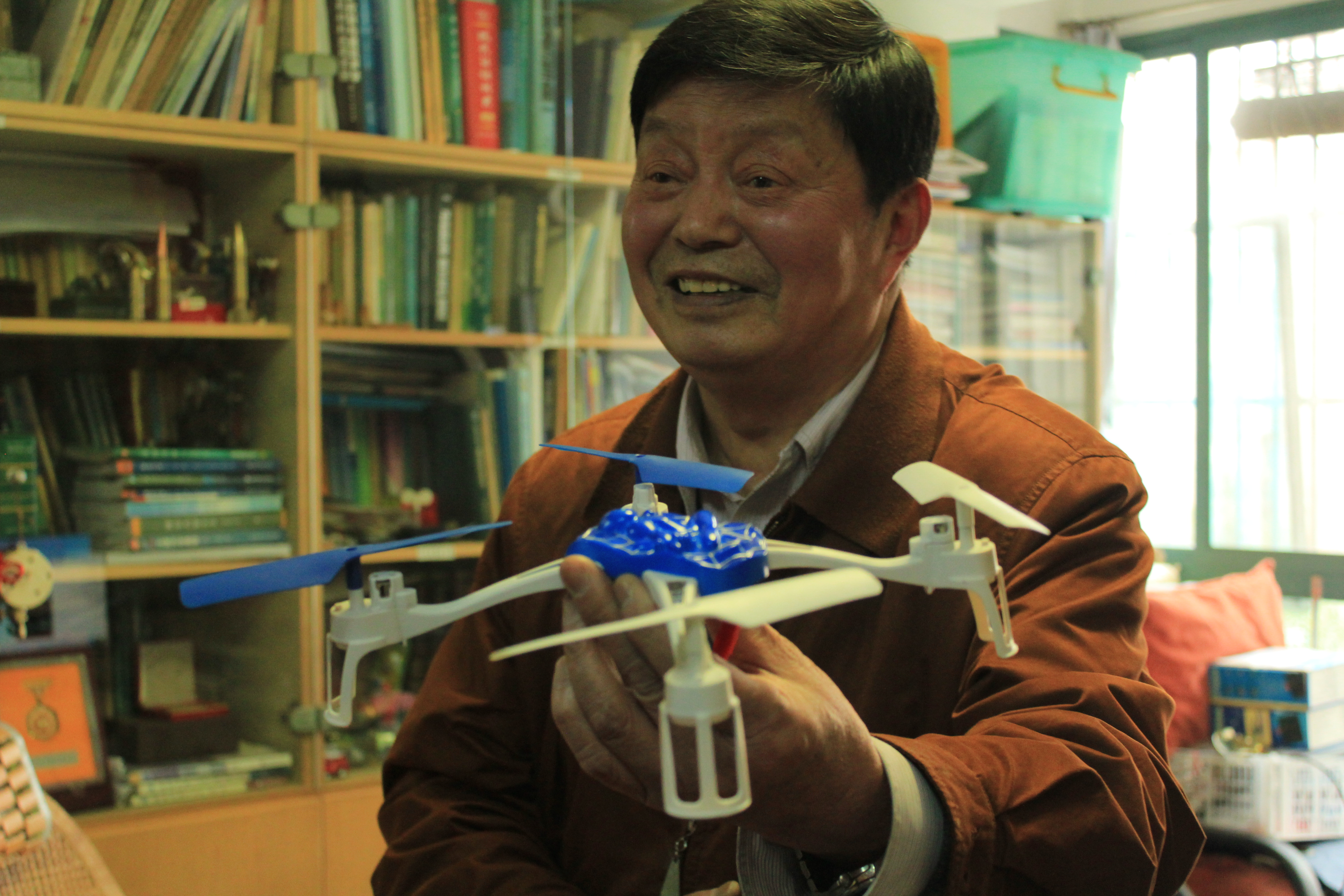 两室两厅的空间里,挤满了庄老师的奖章、资料,还有最近庄老师着迷的多旋翼飞行器实验设备。至今为止,庄老师已经出版教材13本,获得各类奖项108个。退休之后,庄老师将热爱的魔术与力学原理将结合发表的论文就有5篇,仍然笔耕不辍。家中的阳台也被改成庄老师的仪器制作房,随便一个抽屉抽出来,便是满满的螺丝部件。在采访前,庄老师更是表演了许多小魔术,让队员们赞叹不已。庄老师今年82岁,但不显老态,红光满面,估计也和年轻的心态有很大关系。