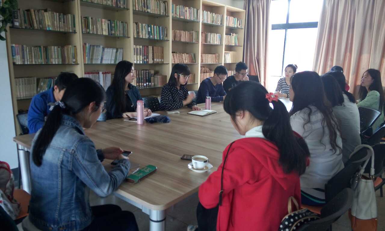 这里正在召开2015年春夏学期的团干部工作会议,学院团委书记、辅导员刘岩老师主持,学院团委副书记许今茜还有各个年级的团支书、各位挂职团干均参加了会议。