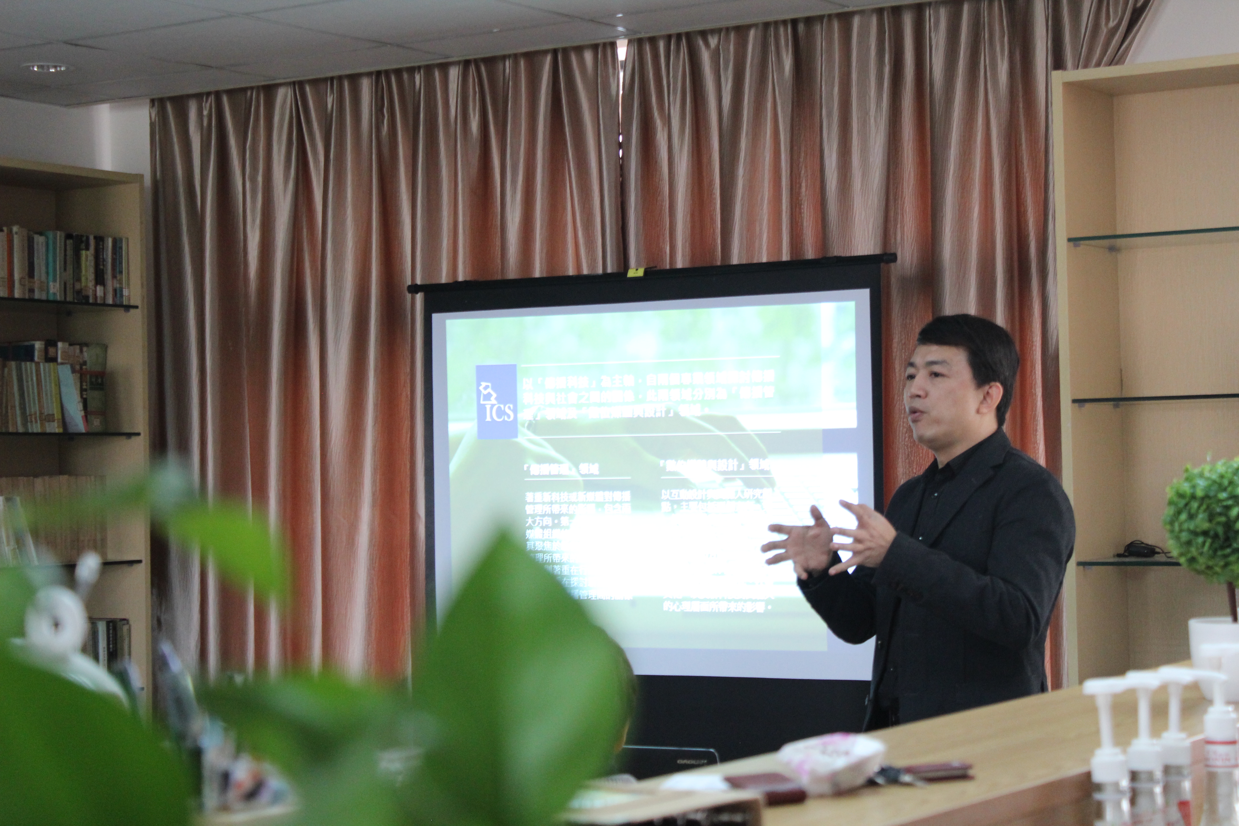 台湾交大传播研究所的李俊德所长准备了精美的PPT,介绍了传播研究所的师资力量、研究领域、新竹的地缘优势对传播研究所的价值、两个研究中心、器材等情况,展现了一所注重传播科技人才培养的高校。