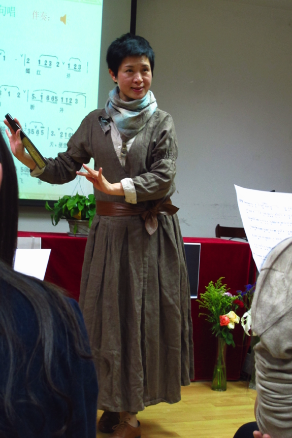 在杨崑老师的带领下,同学们一起学习演唱《皂罗袍》选段。
