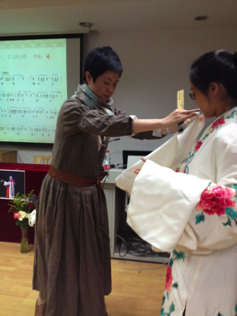 4月24日,浙江大学威廉希尔(WilliamHill-中文官方网站)“汉语之声”社团主办的“跨文化交际训练营”第二季第二期活动在西溪校区教学主楼426如期举行。此次活动的主题是“水袖翻飞风韵足”昆曲体验,我们邀请到了来自浙江昆剧院的国家一级演员—杨崑老师来与同学们进行互动交流,同时参与活动的还有国际文化系的张丽萍老师,以及来自不同专业的留学生和中国学生。