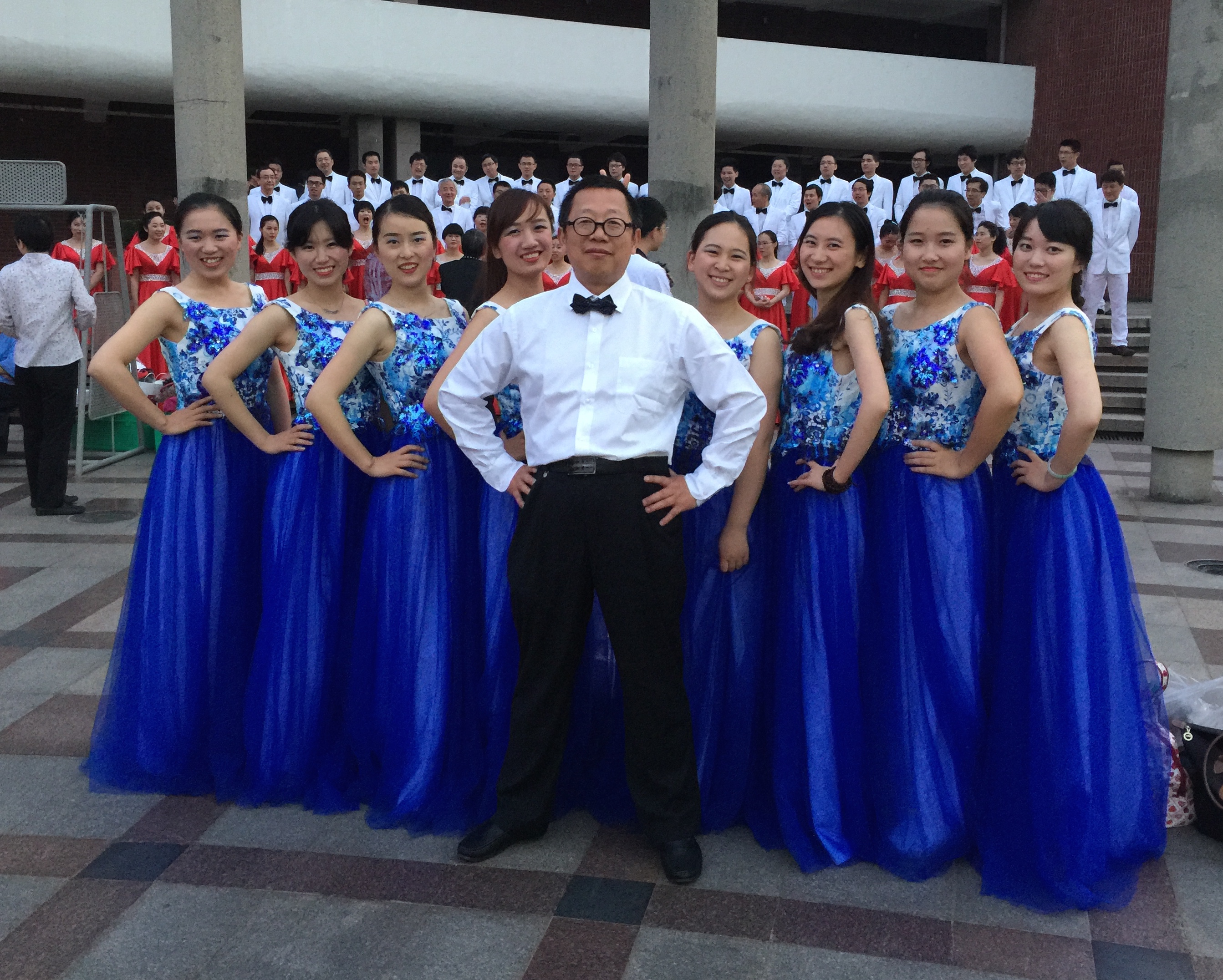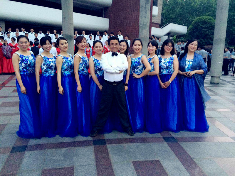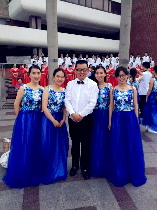 你知道嘛,为了准备这次合唱,老师和学生们好几天都是中午吃着盒饭,然后在专业级的校合唱团大四妹纸侯竹梅的指导下,练习1-2个小时,给他们的精神点个赞!