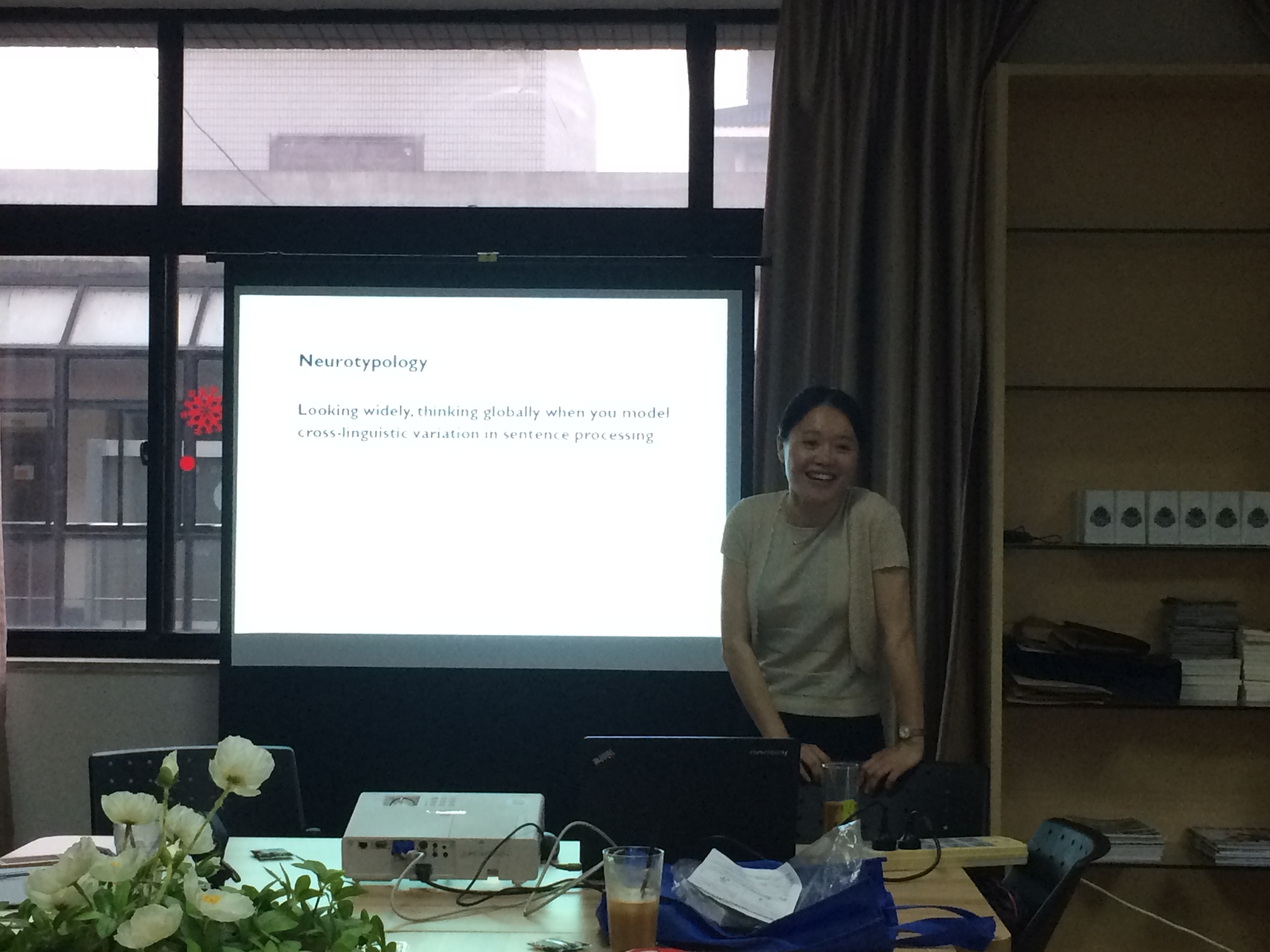王路明博士首先介绍了自己的学术背景及经历,讲述了之前留学德国所进行的研究方向及概况。她所关注的语言学并非传统意义上的语言学,而是从生理层面上的语言加工进行宏观的模型搭建。由此她认为汉语加工应该被放到更为宏大的加工结构中去,并与印欧语系来进行对比,观察对汉语的研究是否能对整个整个语言加工的框架做出些许贡献。