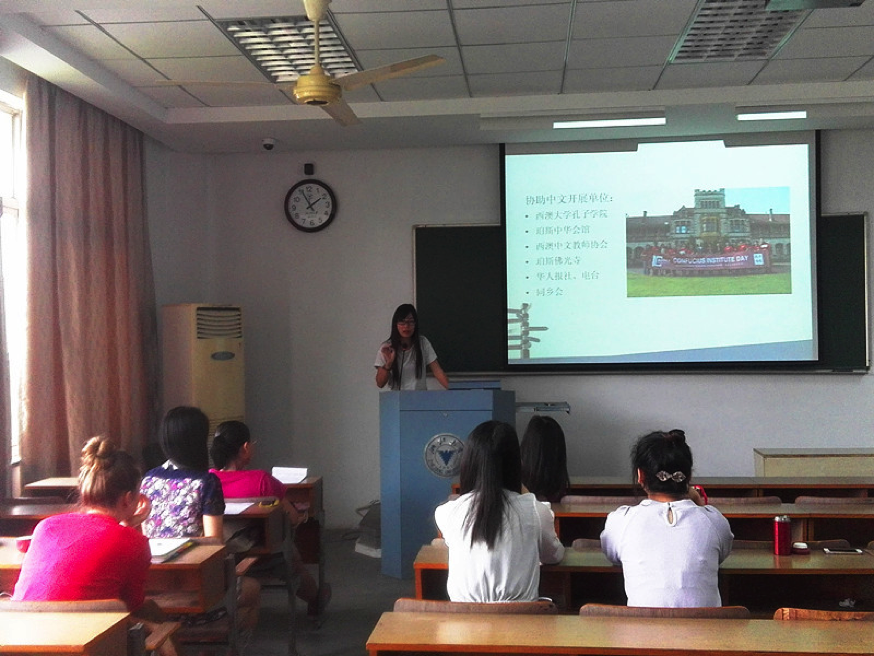 5月14日下午,研究生汉语国际教育党支部活动之孔子学院志愿者经验交流会在田家炳书院507隆重举行。此次交流会特别邀请到了从西澳大学孔子学院交流归来的研究生二年级学姐马慧霞、王欢和李牧之三位优秀学姐,就孔子学院教学过程中的心得体会与注意事项向研一的同学们作报告。支部党员、积极分子、团员及外国留学生均参与了此次活动。交流会现场互动频繁,气氛热烈,主讲人耐心细致地分享了自己的教学经验,并一一回答了观众提问。