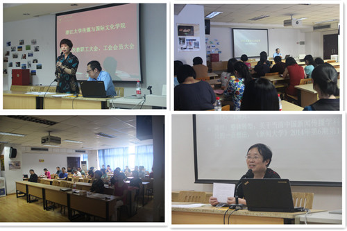 2015年5月15日,浙江大学威廉希尔(WilliamHill-中文官方网站)四届二次教职工大会、工会会员大会在西溪校区教学主楼426室隆重举行。浙江大学传媒学院院长吴飞教授、副院长李杰教授、胡志毅教授、韦路教授,院党委副书记、工会主席王玲玲及学院教职工40余人参加了大会。