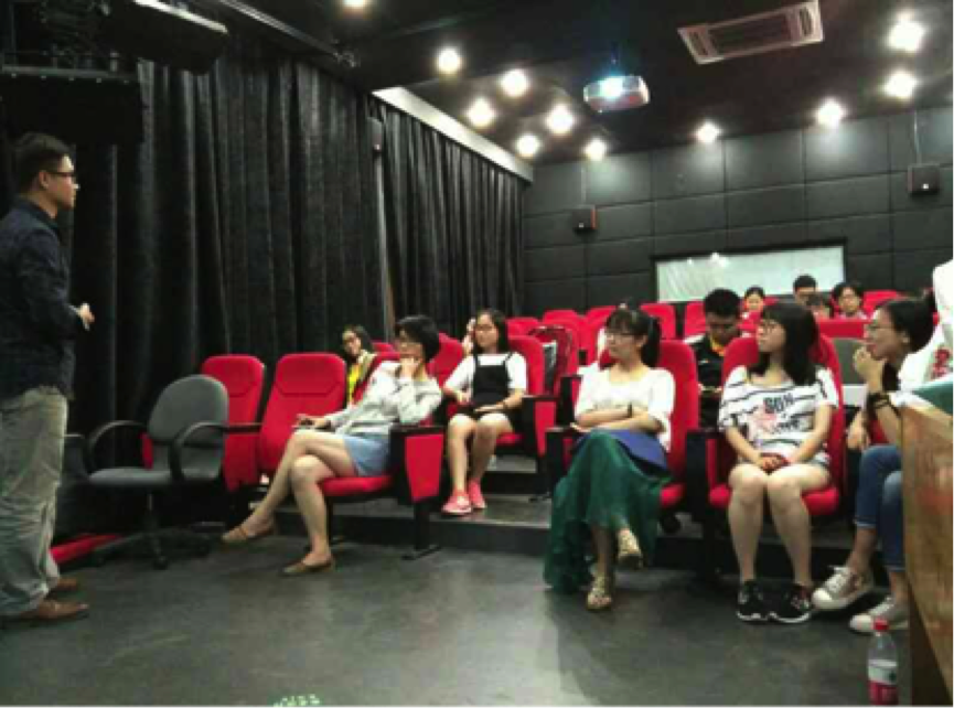 影片结束后,来自12级美学所的博士生朱璟主持了观影会的讨论环节。本科是心理学出身的朱璟先为大家分享了自己对于影片的见解,提出影片从不同的视角分析有不同的感受,特别是主人公对于另一个自我的发现和超越。并为大家重点分析了一些影片中的细节画面,帮助大家更好地了解影片主人公的心路历程。