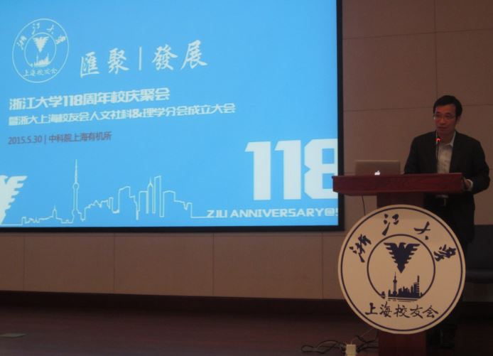 2015年5月30日下午,浙江大学118周年校庆聚会暨浙大上海校友会人文社科&理学分会成立大会在中科院上海有机所圆满落幕。现场不仅有有刚刚走出校门的年轻校友,也有步入社会多年已作为社会中坚力量的各位校友,更有92岁高龄的戴立信院士,老中青汇聚一堂,共庆母校118岁生日。各位校友为该次聚会群策群力:中科院上海有机所的胡金波校友提供了宽敞明亮的会议场地;传媒学院奚雪校友带领志愿者们摄像摄影,奔波在会场;杨旭明校友为该次聚会提供了经费支持。各位校友齐心协力,共同推动本次大会的圆满举办。