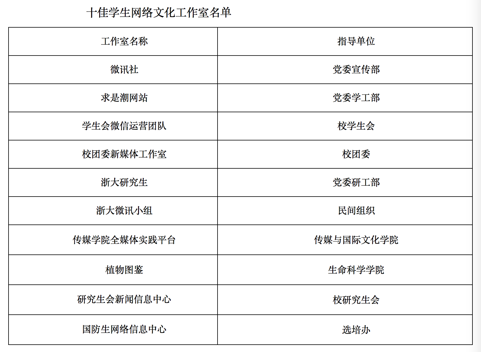 为探索与创新我校学生参与校园网络文化建设的新模式、新机制,营造良好的校园网络文化氛围,党委宣传部与新华社中国网事新媒体基地联合举办了主题为“引领 青春 梦想”的浙江大学“学生十佳网络文化工作室”与“十大网络文化作品”评选活动。