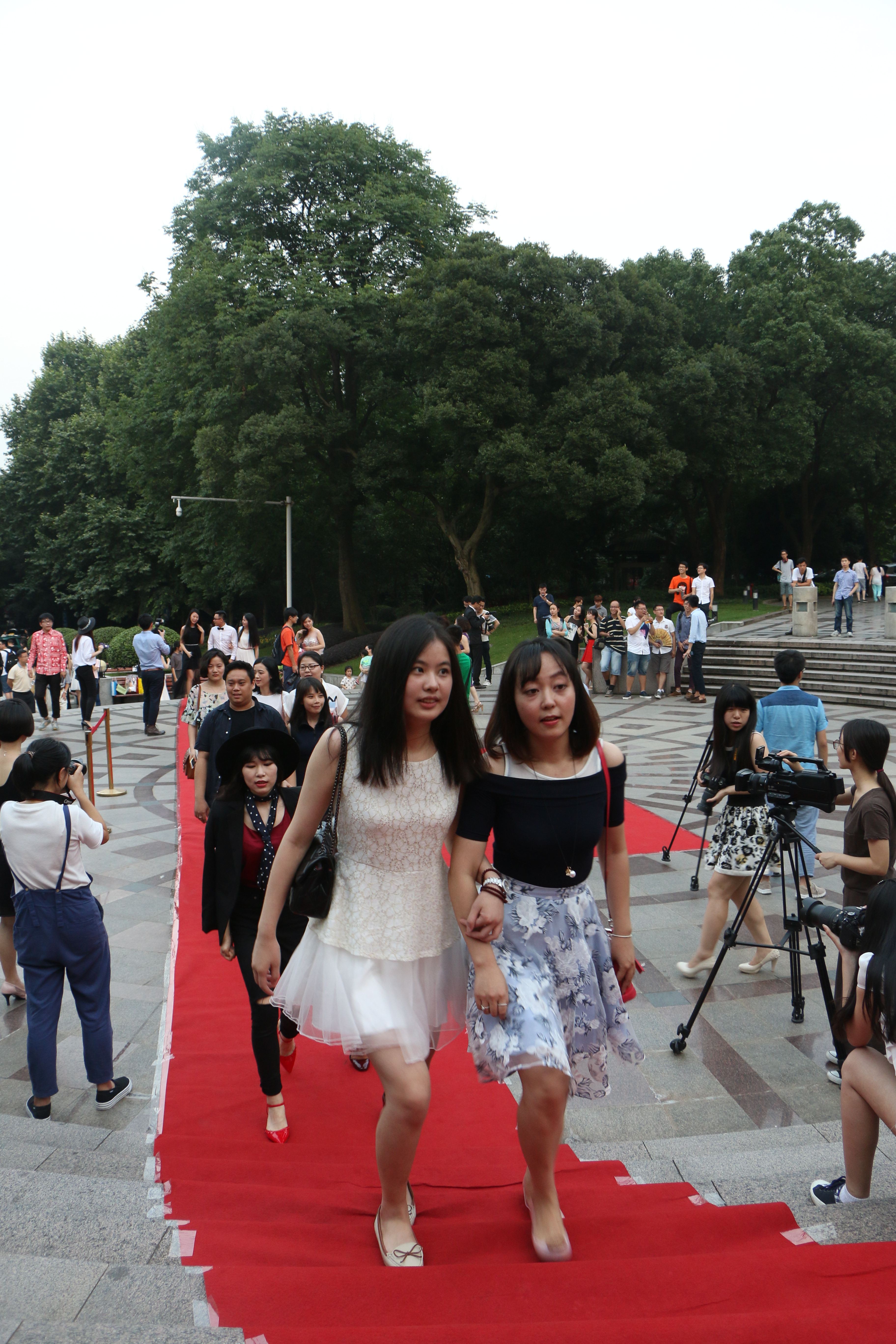红毯秀于18:00正式开始,各位毕业生都身着华丽晚礼服缓缓走上红毯。有携男女朋友出席红毯的,俊男靓女羡煞旁人;也有的是寝室四人挽手走红毯,亲密温馨凝固瞬间;也有和父母一起走红毯的,左手父亲,右手母亲,这些年,父母辛苦了。在4台最新摄像机和多台相机的闪光灯下,即将毕业的传媒学子留下了一张张最放肆开心的笑颜。