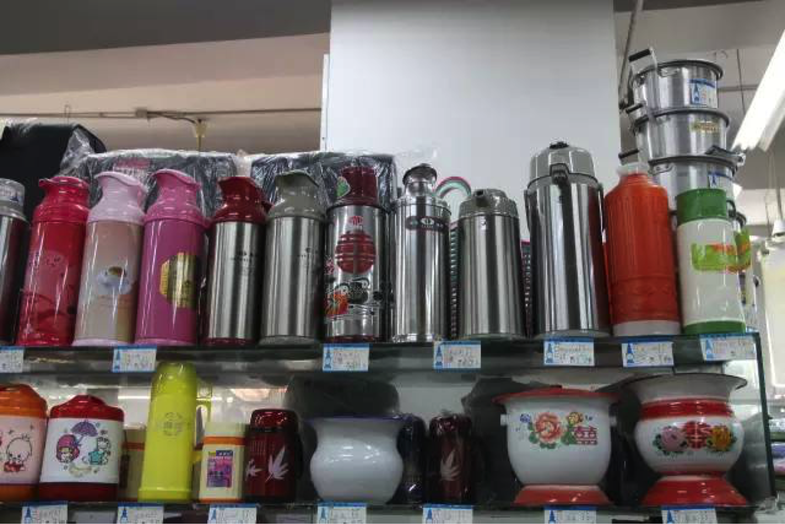 在家家户户安热水器、喝桶装水的当下,热水瓶也渐渐成为久远生活的回忆。豫丰祥里,各式热水瓶整齐站队,鲜亮塑料外壳的、高品质不锈钢的,每一个都站得气宇轩昂。柜台方框里,木瓶塞热热闹闹挤在一块儿。