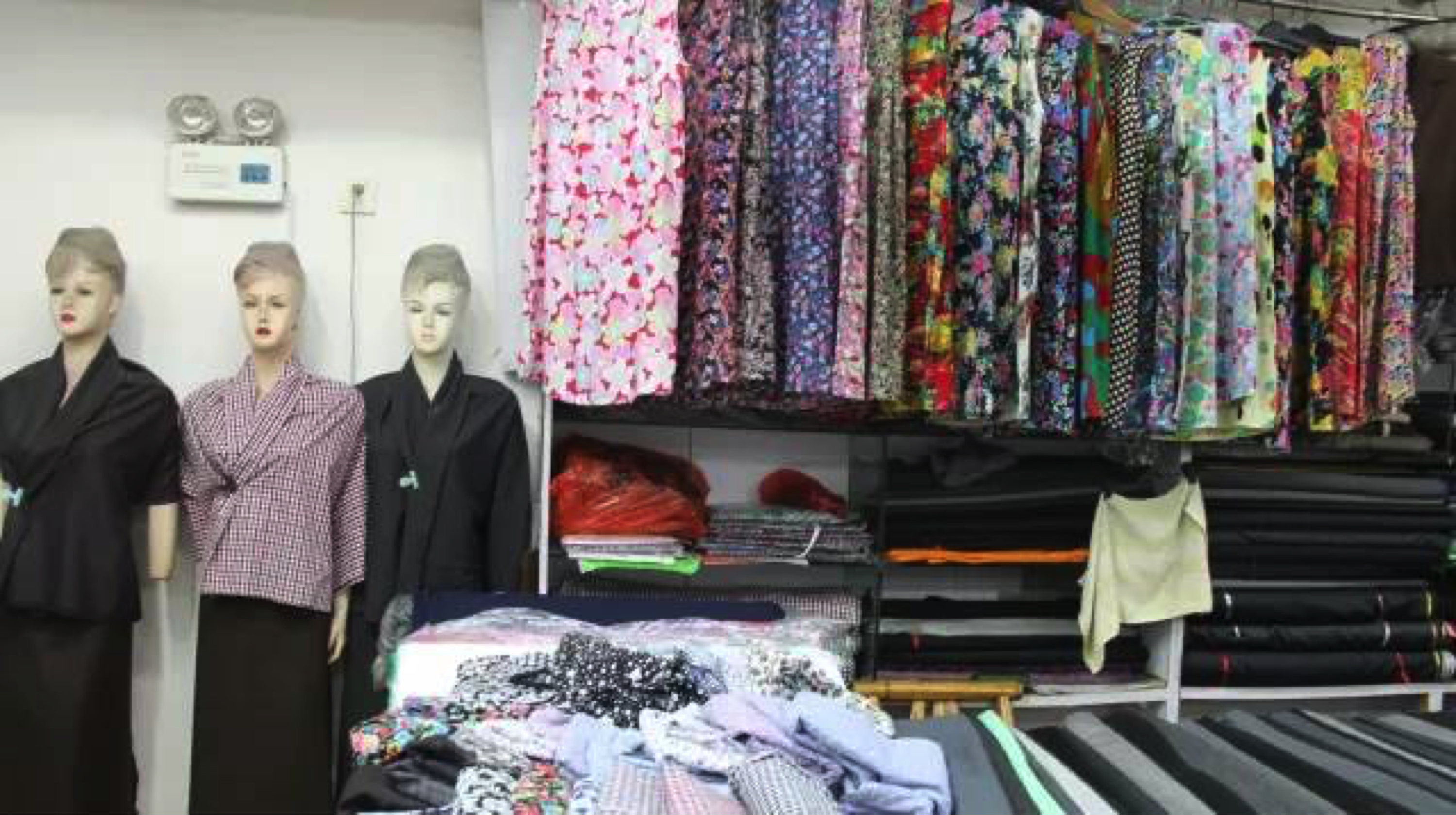 豫丰祥二楼,主营服装鞋帽。初夏已到,碎花的确良女裙,挂在最显眼的楼梯口处,吊扇“滴个滴个”转,吹得裙裾翩然。其他布料,细格子的,纯色的,一摞摞细致铺展,没有一丝褶皱。