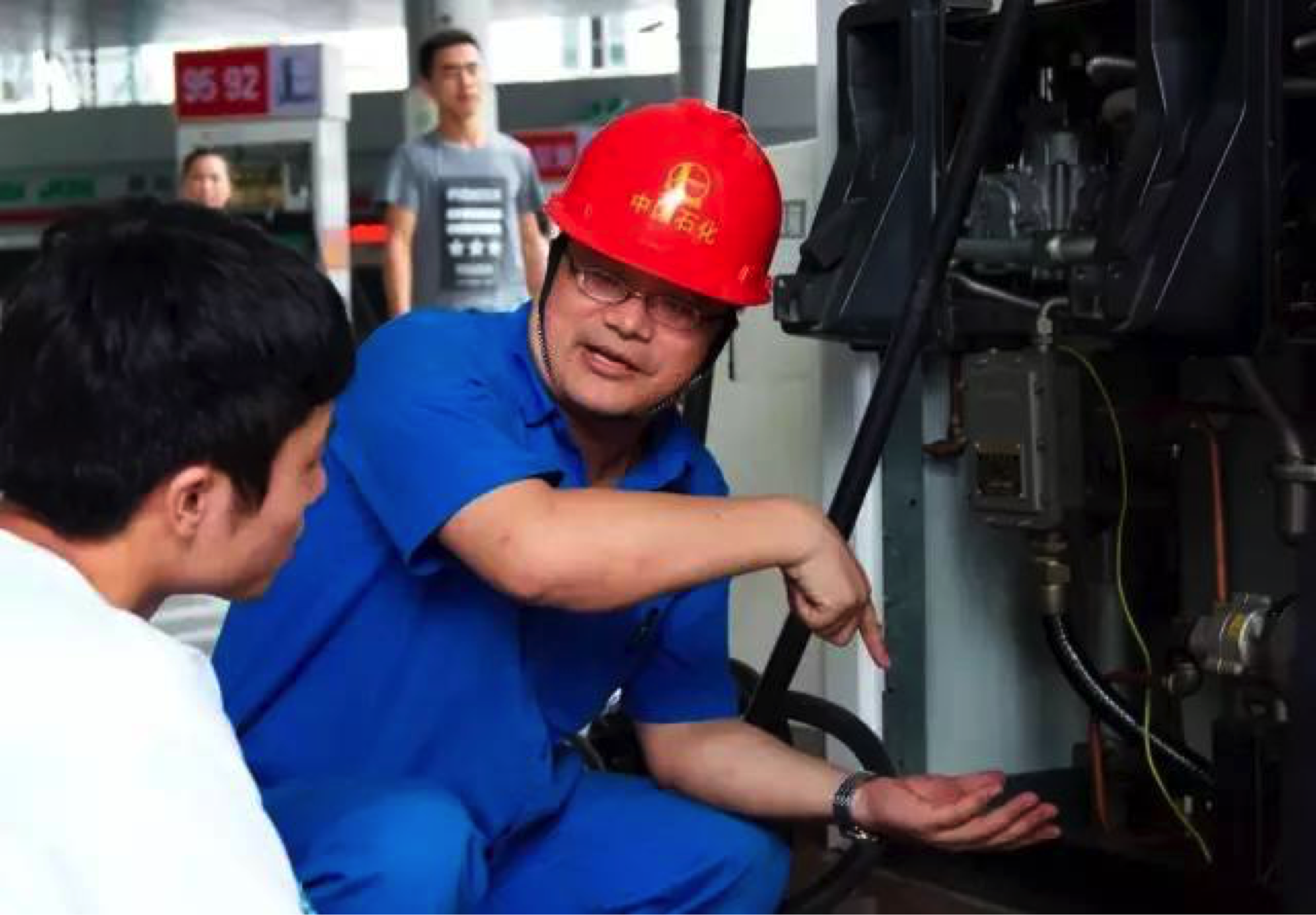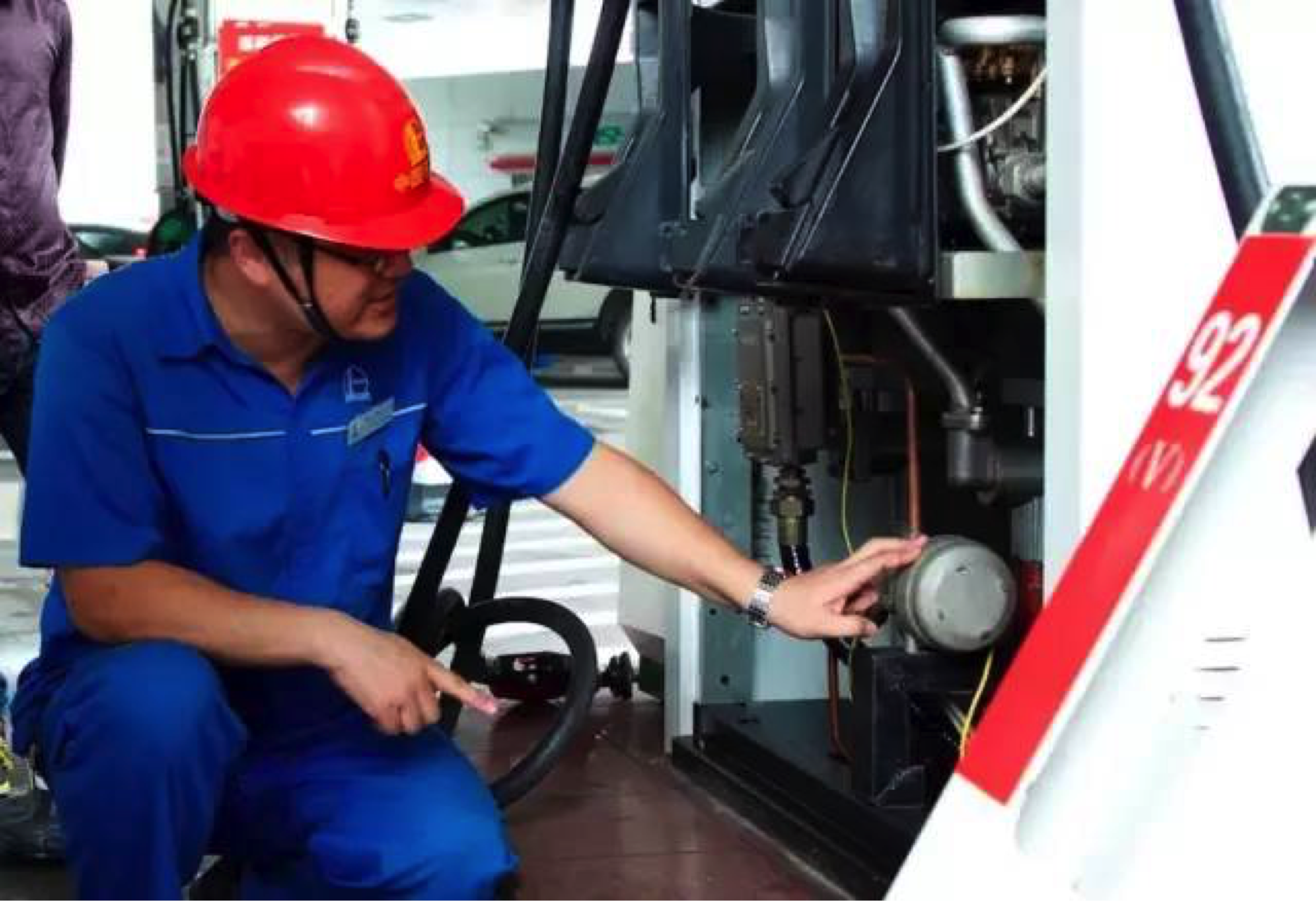 图6:莫干山路加油站的站长告诉实践队员们,加油站的工作人员每天工作都很辛苦,但是也时常会遭到司机师傅的质疑,比如少加了油、在油中掺水等。实际上他们不可能也没必要这么做,现在的仪器设备都很严密,会定期接受上级部门的检查,有时候加油量出现误差,可能是热胀冷缩等其他原因导致的。