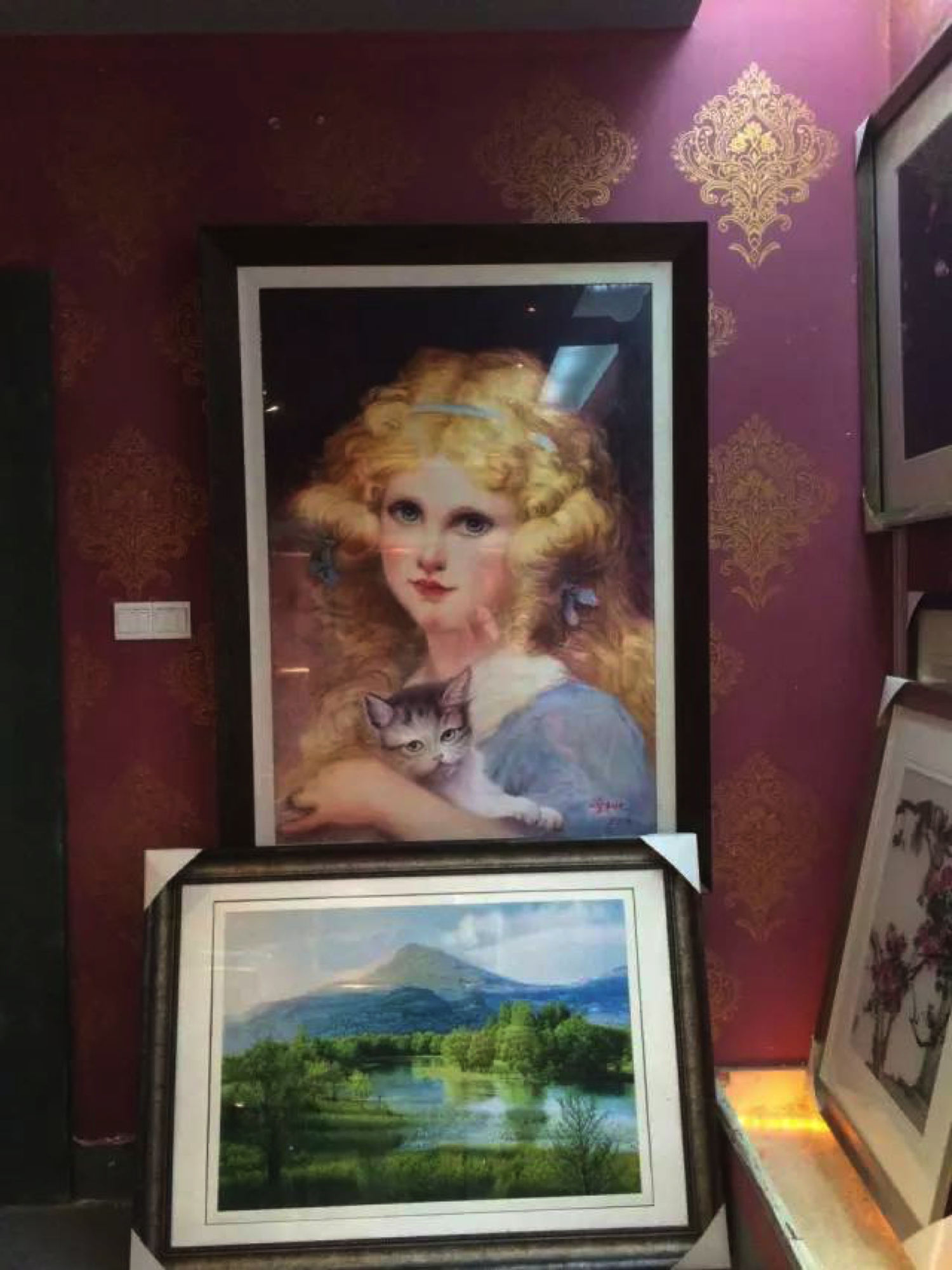 继第一天拜访两位乱针秀大师,随后来到了位于刘海栗美术馆内的乱针秀展厅参观,馆内除了摆放工艺美术师狄静老师的作品外,还展售一些其他弟子的绣品。绣品样式丰富,题材还是以人物、风景、动物为主,近看针法紊乱,远观栩栩如生,强烈的层次感和立体感产生了类似西洋油画的光色透视效果,使人每每欣赏一幅绣品不得不连连惊叹。