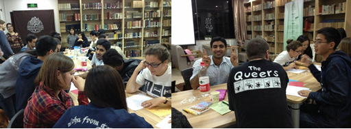 随后,活动将讨论的话题从“毅行”扩展到中外学生宿舍的比较,以此作为本期汉语角最后自由讨论环节的主题,将留学生现实生活中会遇到的情况作为话题,搬到汉语角的活动中进行讨论,这一举措一下子拉近了中外学生的距离,大家纷纷举手发言,场面相当热烈。原定一个小时的活动,在大家的热烈讨论下延续到了九点整,每个人都用汉语表达了自己的观点,第二期汉语角活动就在这样热烈的氛围下圆满结束,大家都相约下周三再见。