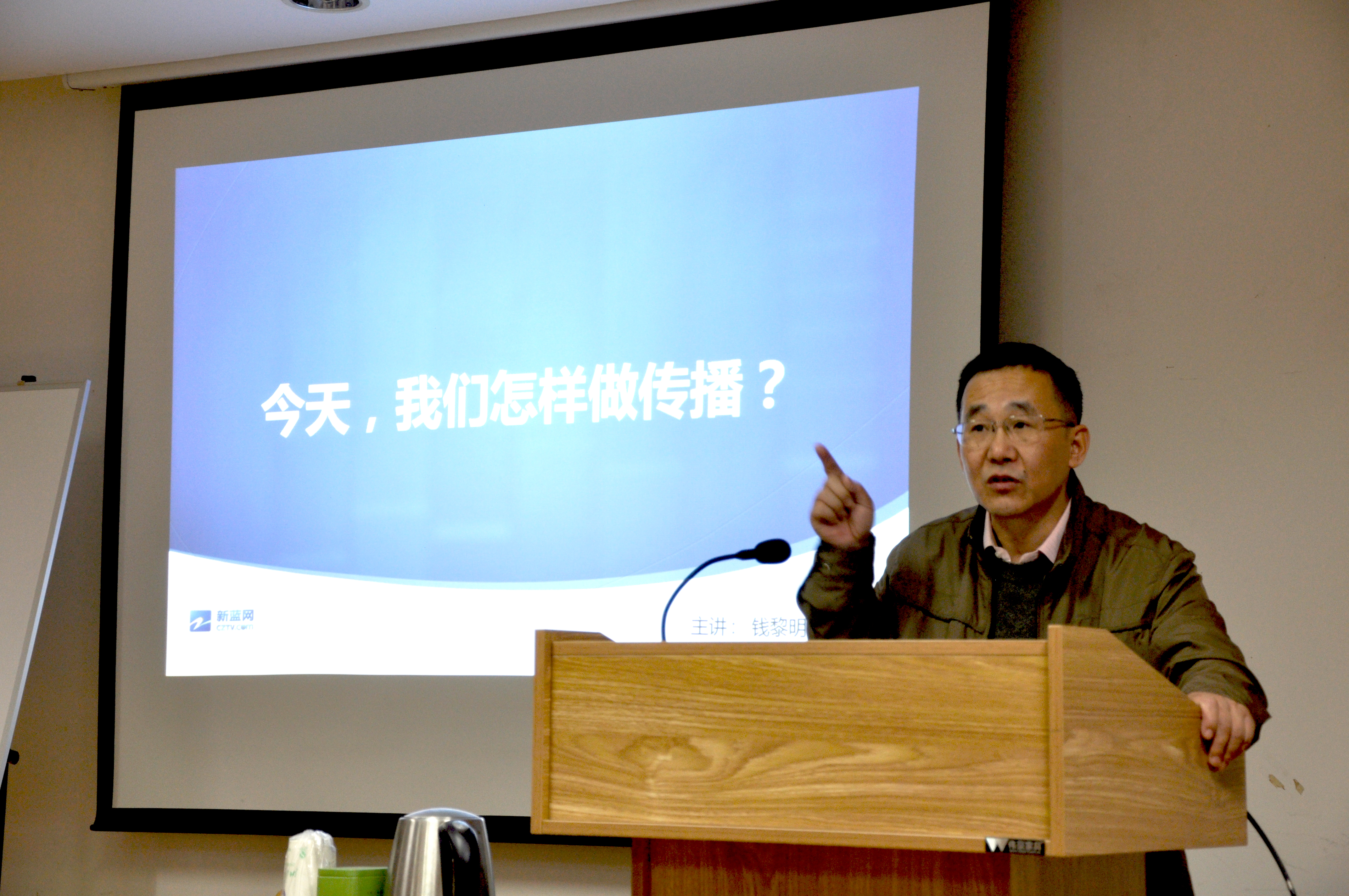 第三期课程以“今天,我们怎样做传播?”为主题,授课教师是新蓝网总裁钱黎明老师。“互联网给传播带来哪些变化?”、“互联网思维的关键词有哪些?”、“如何在当下培养互联网思维、提升媒体素养?”、“互联网语境下的融合新闻要怎么做?”,钱黎明老师从这四个基本问题出发,用丰富、形象的新闻实例,为同学们上了精彩一课。同学们利用这个宝贵的机会,还就媒体发展的一些细节问题与钱老师进行了深入的交流。