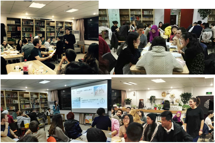 活动开始先由活动主持人彭胜杰向大家简单地介绍了一下中国的冬天,因为中国地域广阔,所以在南方和北方,呈现出不一样的冬日风光。中国南北的冬天,不仅室外的风光差异较大,由于暖气等设备,室内的景观也不大相同。而南北“暖气”问题,正是这段时间全国讨论得最激烈的问题,这样的话题,正好让中外学生引起对于现实生活的关注以及思考。简单了解了中国的冬天,主持人便让大家与自己的组员一起讨论了留学生自己国家的冬天。