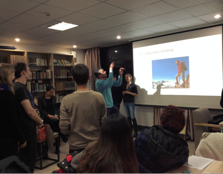 为了让大家能够在杭州度过一个有趣的冬天,本次活动的另一位主持人钱婷还为同学们推荐了杭州附近好玩的冬季游乐场所。比如,比较有名的临安大明山,安吉天荒坪,奉化商量岗,以及室内滑冰场绍兴乔波冰雪世界。最后,她还让大家分享了不同国家的过冬方式,以及大家最喜欢的娱乐方式,引起了大家积极的讨论。