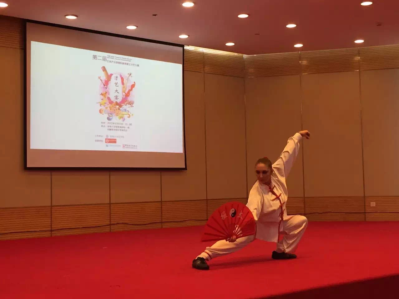 2015年12月17日,在苏州大学隆重举行江浙沪地区汉语国际教育硕士联盟第二届才艺大赛,包括南京大学、复旦大学、华东师范大学、人民大学(苏州校区)等十几所高校的汉语国际教育硕士参加了此次比赛。浙大威廉希尔(WilliamHill-中文官方网站)派出三位留学生,由国际文化学系张丽萍老师带队参赛。在二十多个精彩节目角逐中,罗马尼亚王博同学因精湛的中国武术表演获得全场最高分,斩获特等奖,罗马尼亚的莫丽丽同学获得三等奖,来自摩洛哥的布柴伯同学获优秀奖。