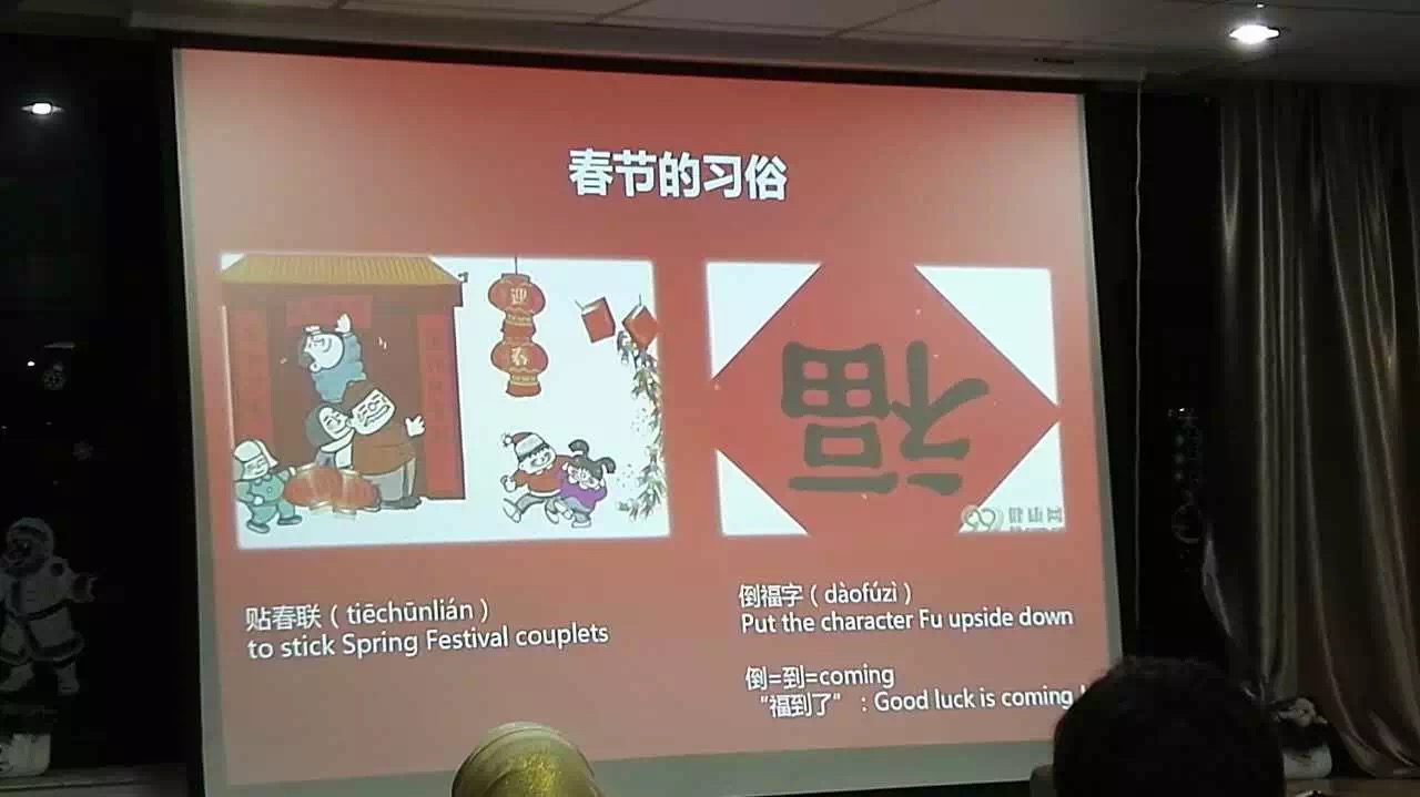 随后,主持人围绕“回家”这个主题为大家展现了中国“春运”的场景,并由此展开了第二次讨论,“为什么中国人春节一定要回家?”在讨论中,很多留学生们都对中国的“家文化”表现出浓厚的兴趣,也都逐渐理解了“回家”是中国的传统文化。在活动最后,胡秧同学还教大家如何拜年。“在中国有‘男左女右’的传统,拜年的时候,女生要将右手搭在左拳上,但不抱拳,而男生的右手有‘攻击’的含义,所以我们要用左手把右手抱起来……”在场的同学纷纷学着做起来,并相互拜年,祝贺“新年好”,为活动增加了不少年味。