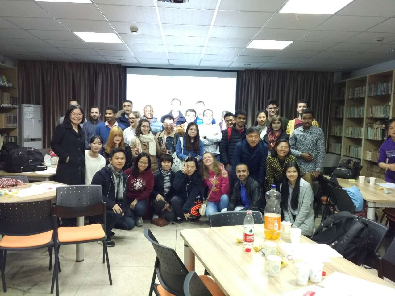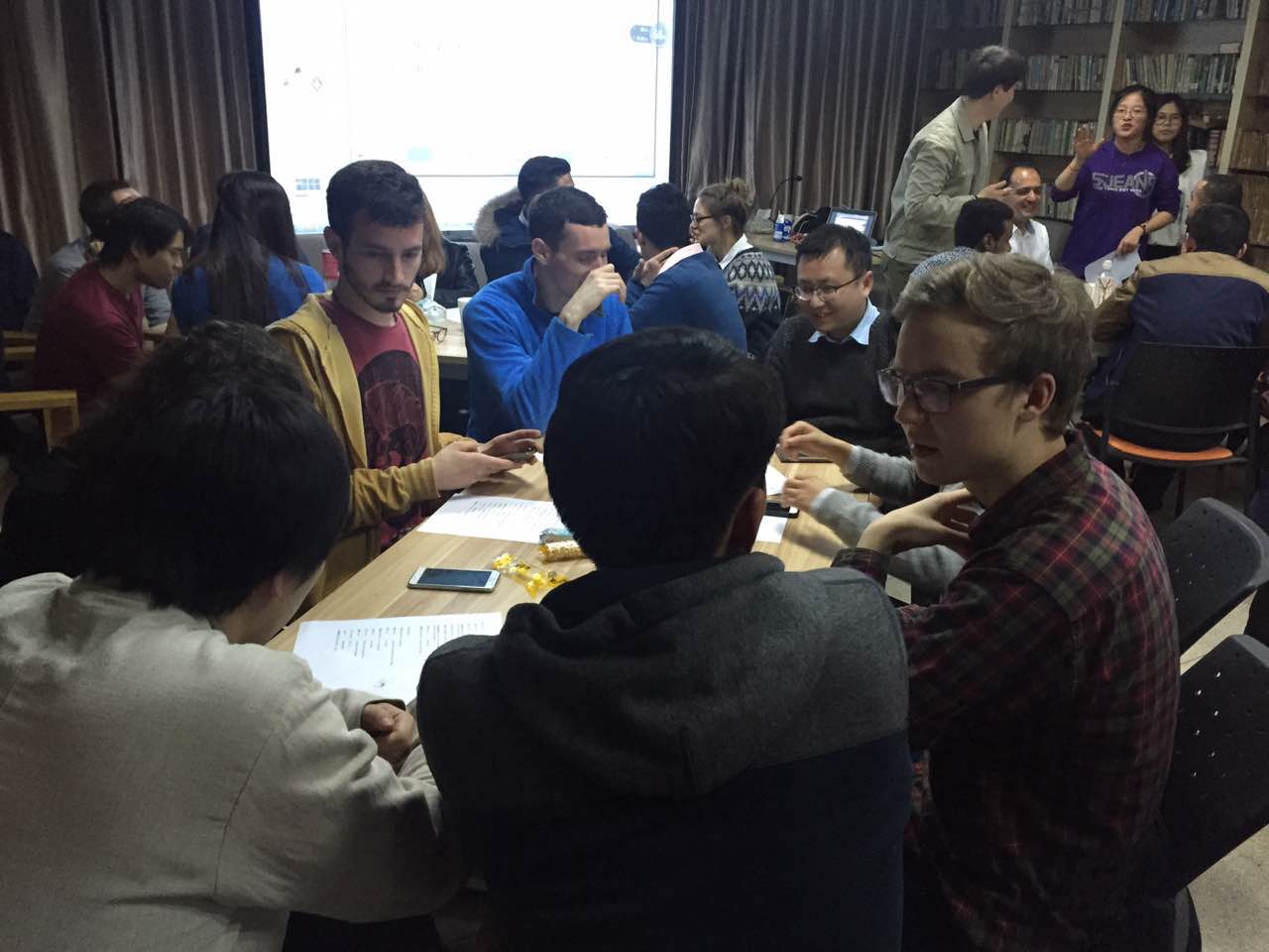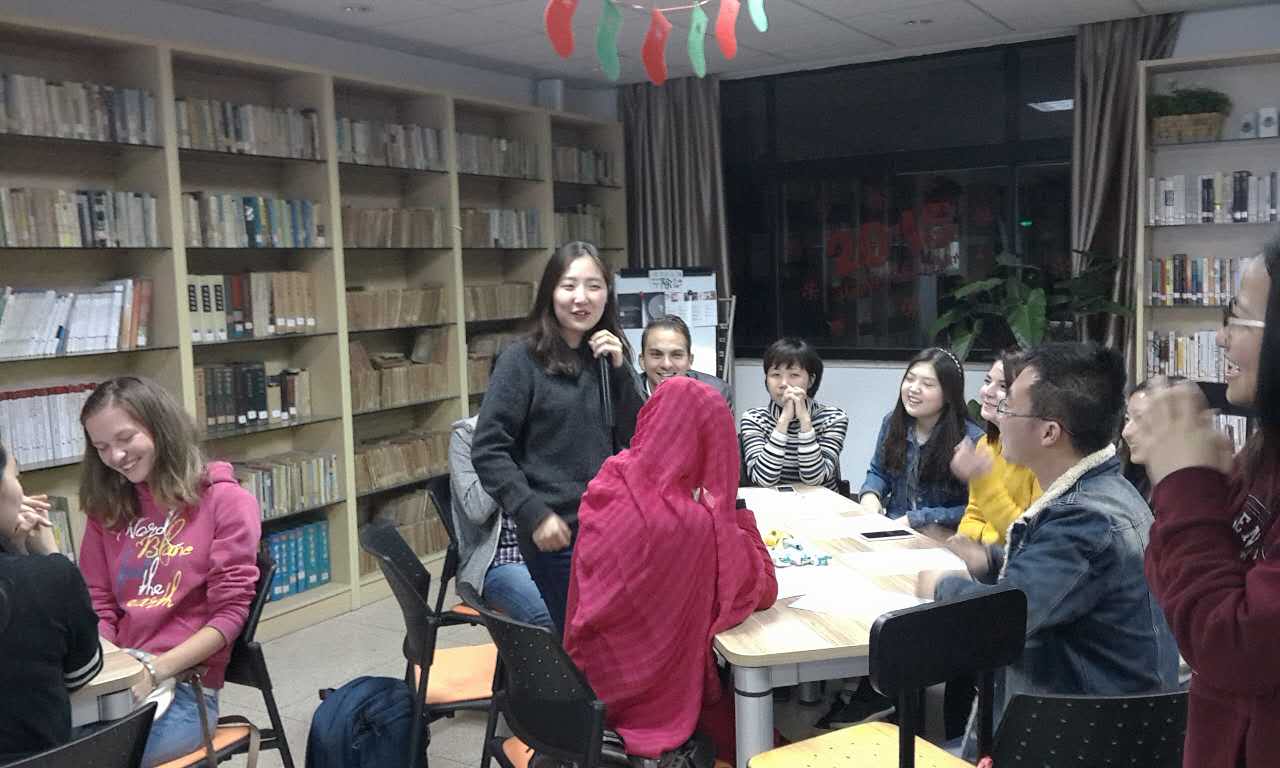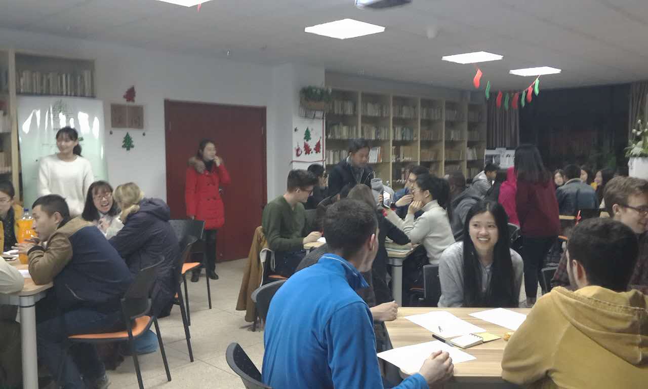 在主持人的引领下,每个小组的小伙伴们开始彼此交流寒假的经历,自己国家的节日以及讨论父母会不会“催婚”等问题,最后的游戏环节,“颜值”、“土豪”、“吃土”等网络热词也一一出现,惹笑不断。