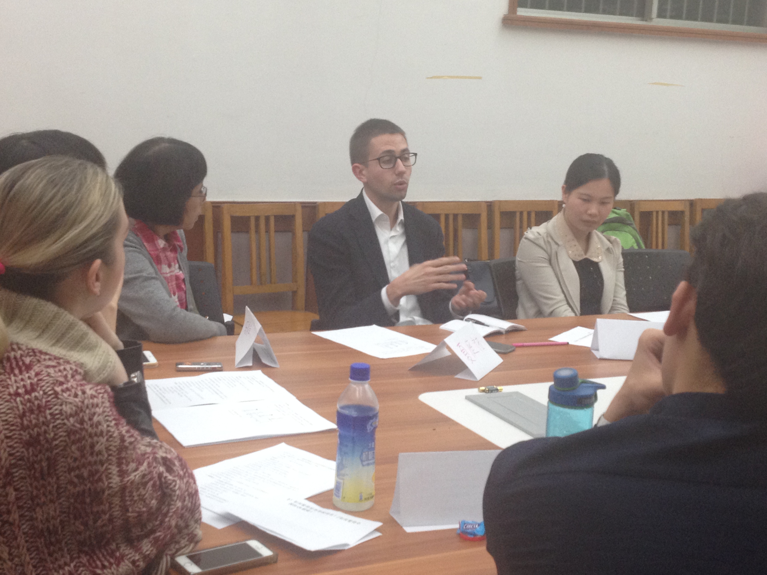 4月20日周三晚7点,高级汉语角在主楼511如期举行。本期汉语角由15级汉语国际教育硕士薛丽青和宋雪(俄罗斯)主持,主要围绕“中外教育问题”展开讨论。参加此次汉语角的,除了世界各国留学生,还有国际文化系张丽萍老师、刘颖老师以及在美国教育局工作多年的庄文仁老师。