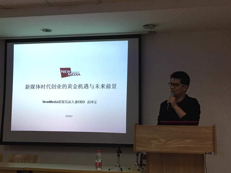 “2006-2007空中网,2007-2010 移动梦网新闻中心主编,2010-2012 搜狐微博名人战略总监,2012-2014奇虎360新媒体公关营销总监,2014年12月25日创办NewMedia新媒体联盟。”袁国宝把他的履历毫无保留地放在了屏幕上,没有一丝炫耀,他一条一条认真地给在座的学生分析自己的经历,当初为何进入,期间做了什么,最后又为何退出,非常清楚,非常干净,也非常简单,正如他本人带给我的感觉一样。