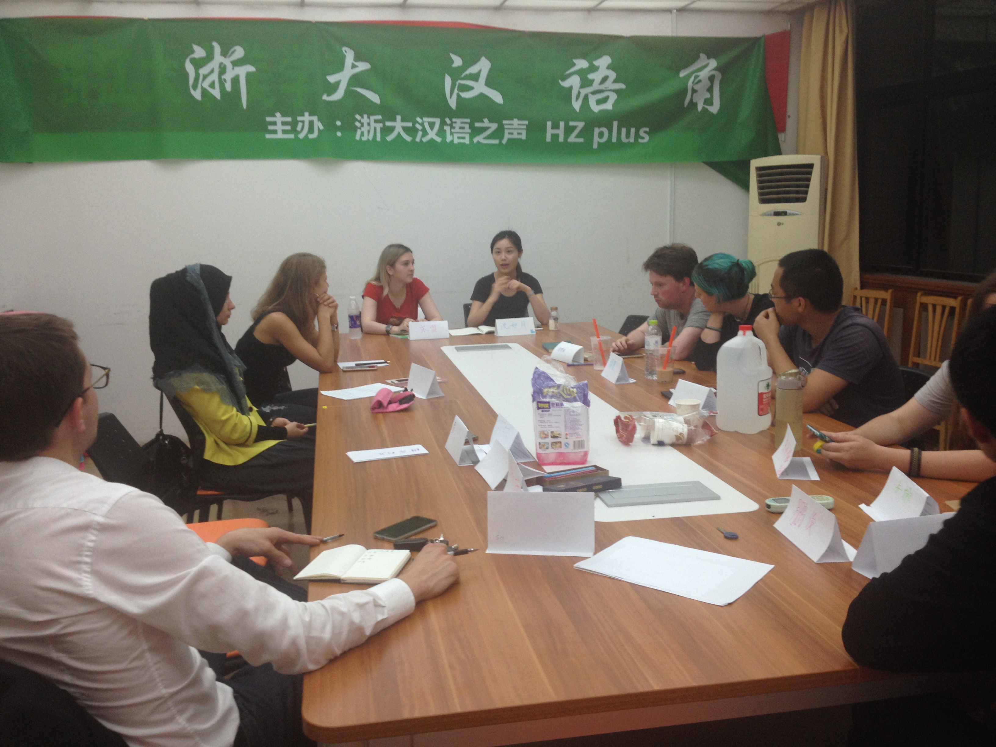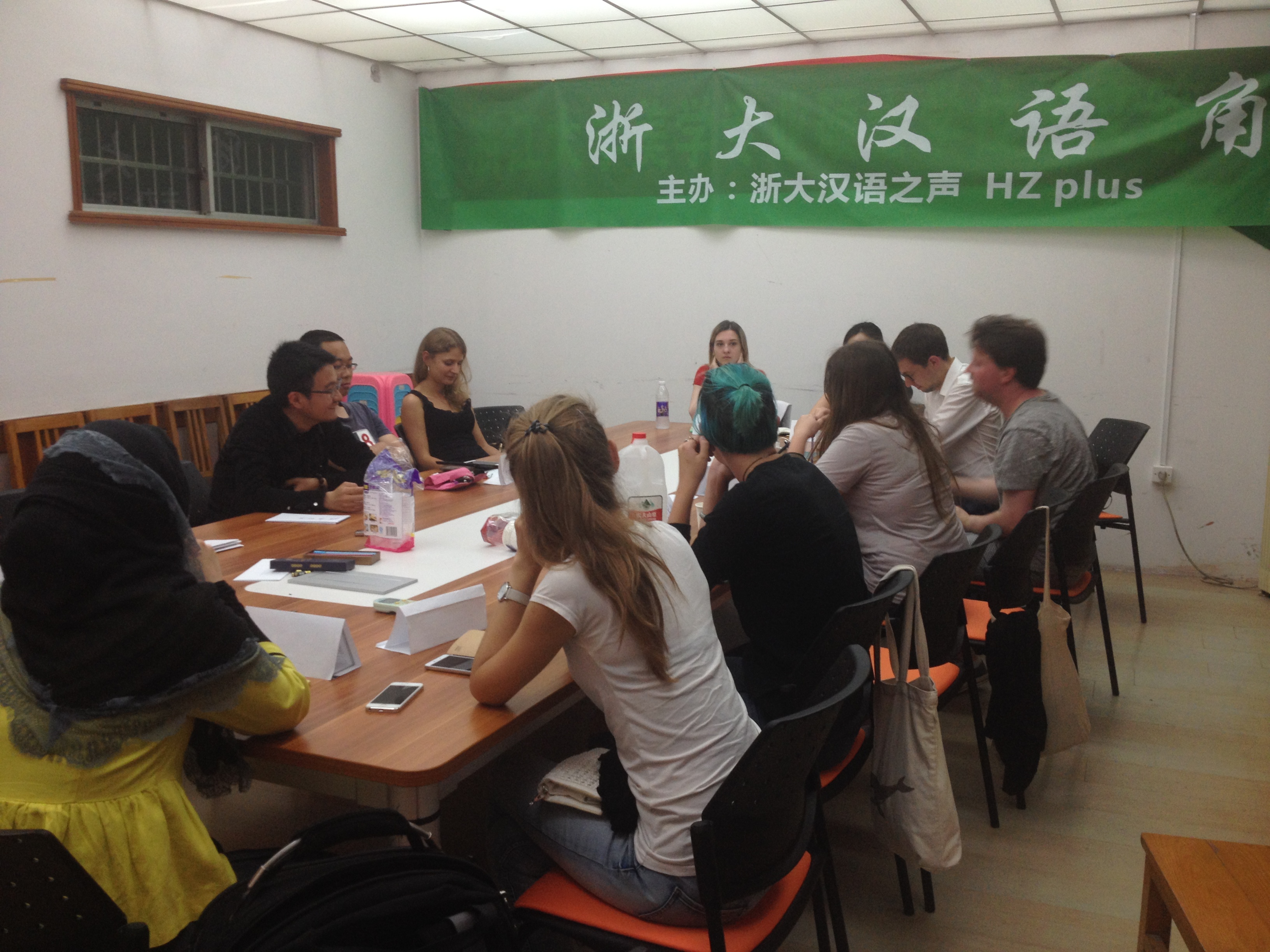 5月25日晚7点,汉语角高级版如期在主教511举行。这次我们讨论的话题是G20与杭州国际化。话题从第一个问题“你们对G20有哪些了解?”开始。本期主持人是15级汉硕沈如月和俄罗斯留学生宋雪。